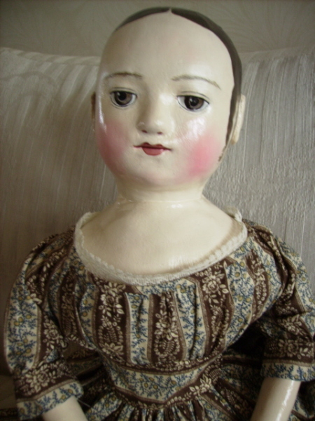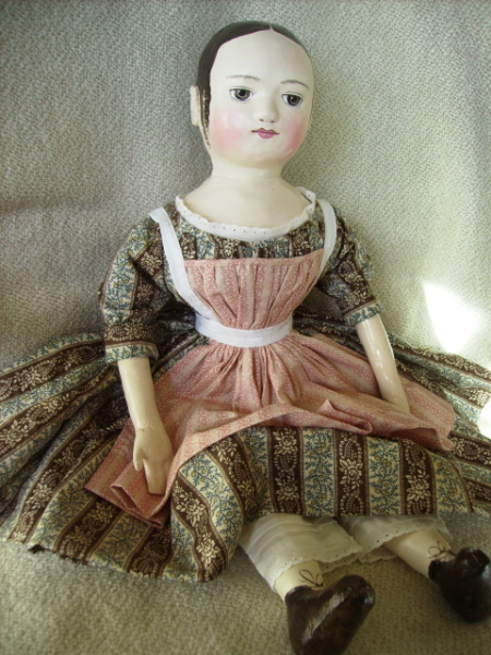 Recently, Margie Herrera, one of the students in my Izannah Walker Reproduction Doll Making Class, finished her first Izannah. Margie is an extremely talented doll maker and her doll is beautiful. I feel just like a proud mother. So in the tradition of Moms everywhere, I am posting photos of Margie’s doll here for you all to admire.