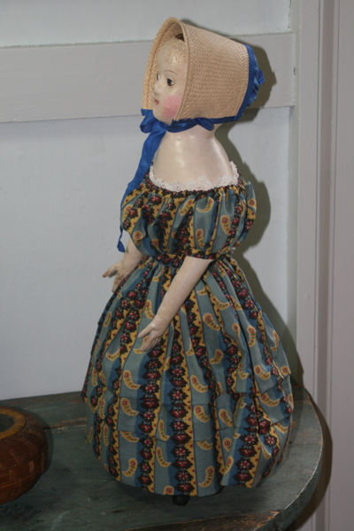 My name is Paula Walton. I’m a working craftsperson. I’ve been self-employed since 1986, when I started selling the items that I make under the name A Sweet Remembrance. Among other things, I am a doll maker, a dressmaker that specializes in reproduction women’s and children’s clothing, maker of spun cotton ornaments and holiday figures, and a freelance designer. Upon occasion I write magazine articles and am a Craftsperson in Residence. I teach and do demonstrations quite frequently, plus I was previously the director and curator of a small museum in Connecticut.