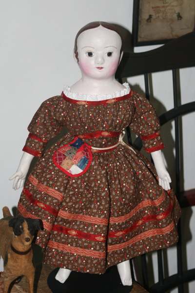 My name is Paula Walton. I’m a working craftsperson. I’ve been self-employed since 1986, when I started selling the items that I make under the name A Sweet Remembrance. Among other things, I am a doll maker, a dressmaker that specializes in reproduction women’s and children’s clothing, maker of spun cotton ornaments and holiday figures, and a freelance designer. Upon occasion I write magazine articles and am a Craftsperson in Residence. I teach and do demonstrations quite frequently, plus I was previously the director and curator of a small museum in Connecticut.