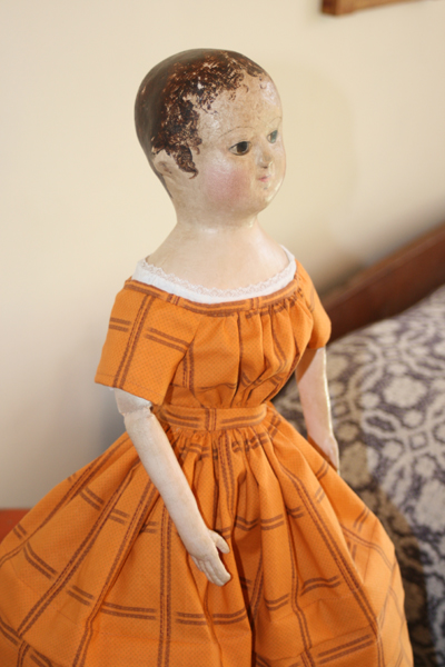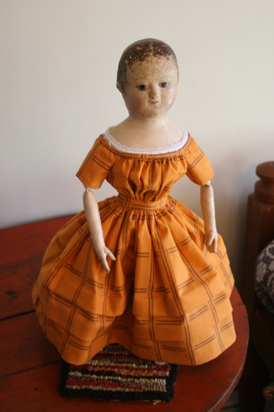 My name is Paula Walton. I’m a working craftsperson. I’ve been self-employed since 1986, when I started selling the items that I make under the name A Sweet Remembrance. Among other things, I am a doll maker, a dressmaker that specializes in reproduction women’s and children’s clothing, maker of spun cotton ornaments and holiday figures, and a freelance designer. Upon occasion I write magazine articles and am a Craftsperson in Residence. I teach and do demonstrations quite frequently, plus I was previously the director and curator of a small museum in Connecticut.