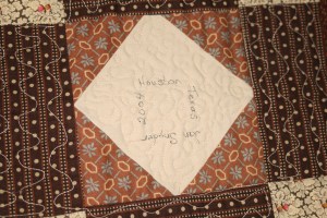 Now whenever we look at our finished quilts we remember the good time we had creating them, and think of all of the people that came together to make each of our quilts.