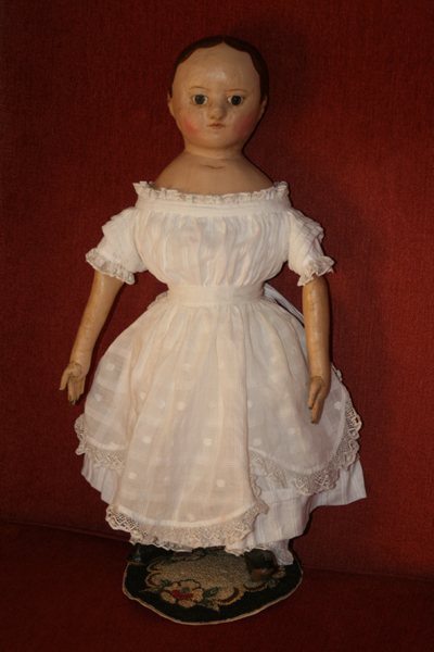 My name is Paula Walton. I’m a working craftsperson. I’ve been self-employed since 1986, when I started selling the items that I make under the name A Sweet Remembrance. Among other things, I am a doll maker, a dressmaker that specializes in reproduction women’s and children’s clothing, maker of spun cotton ornaments and holiday figures, and a freelance designer. Upon occasion I write magazine articles and am a Craftsperson in Residence. I teach and do demonstrations quite frequently, plus I was previously the director and curator of a small museum in Connecticut.