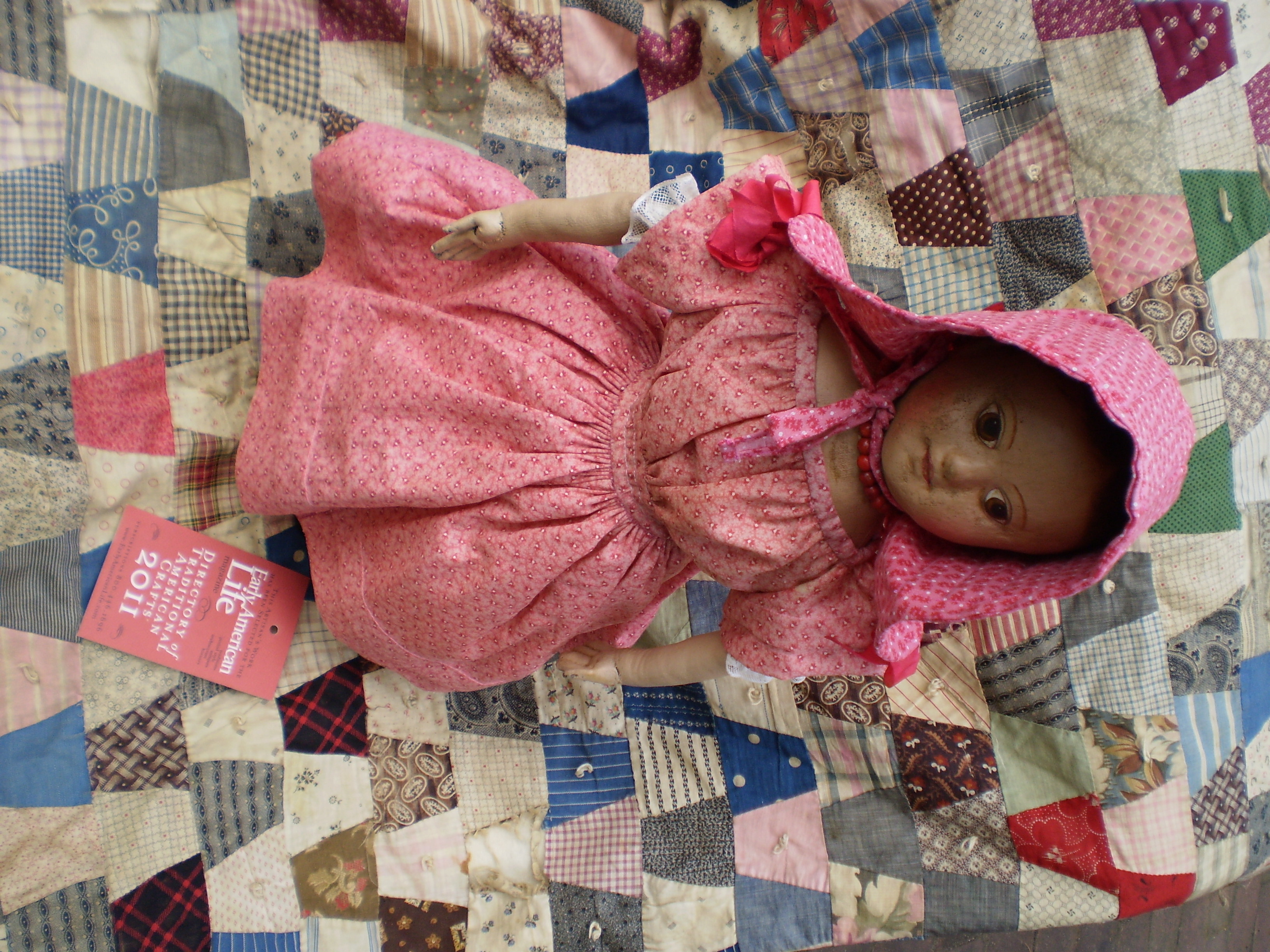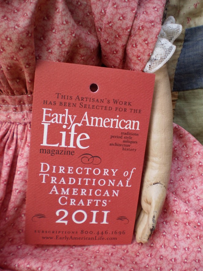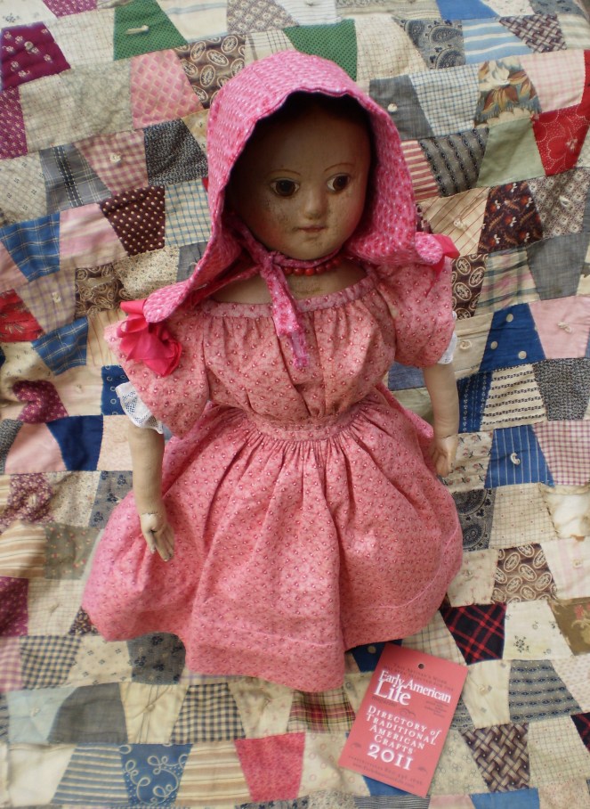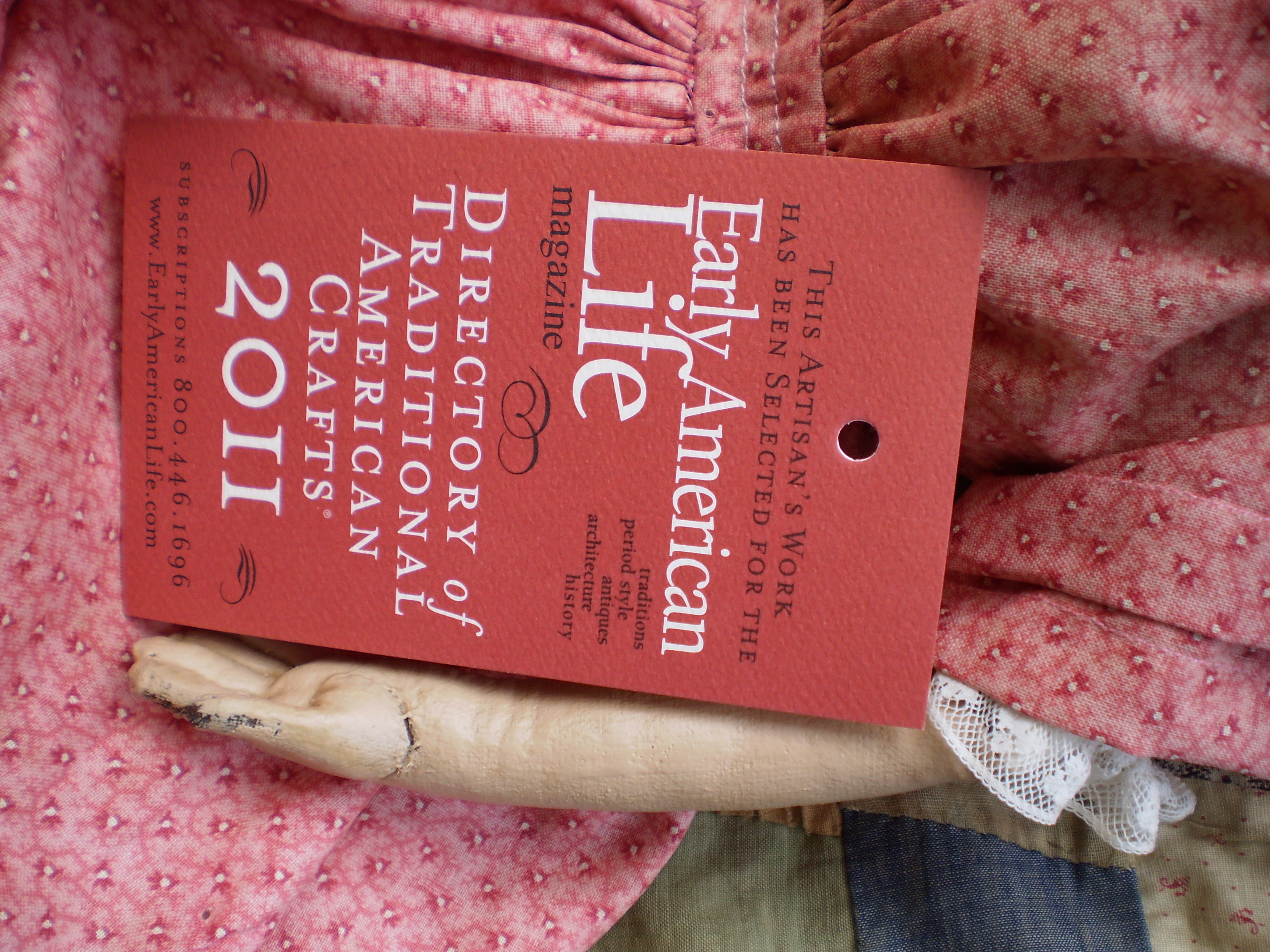 My name is Paula Walton. I’m a working craftsperson. I’ve been self-employed since 1986, when I started selling the items that I make under the name A Sweet Remembrance. Among other things, I am a doll maker, a dressmaker that specializes in reproduction women’s and children’s clothing, maker of spun cotton ornaments and holiday figures, and a freelance designer. Upon occasion I write magazine articles and am a Craftsperson in Residence. I teach and do demonstrations quite frequently, plus I was previously the director and curator of a small museum in Connecticut.