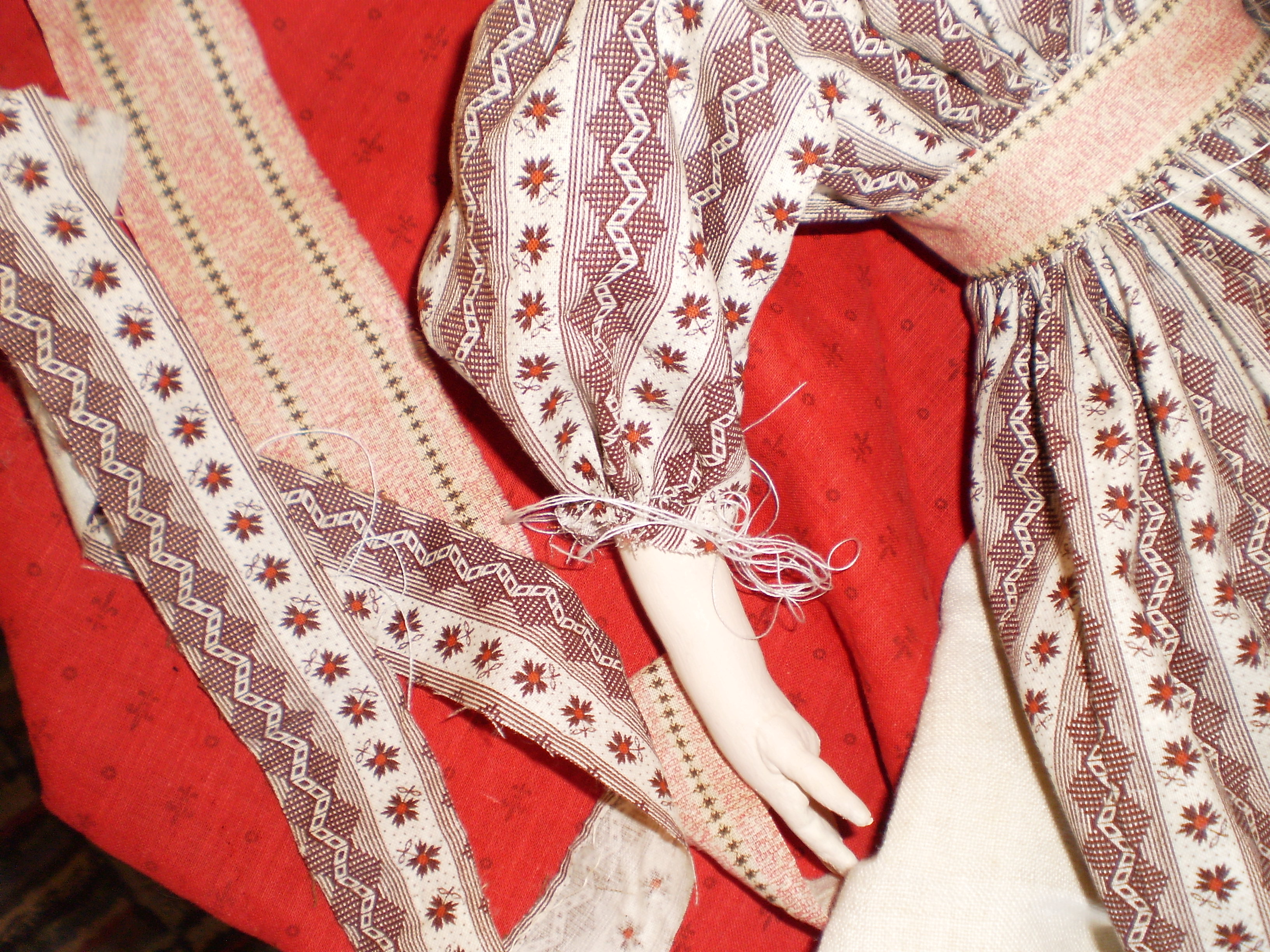 I am quite pleased with the way the dress is turning out and once it’s finished I’m planning to make a Turkey red sunbonnet to go with it, as well as a red embroidered apron. I had such a good time sorting through my antique fabrics and picking out just the right ones, that I almost managed to forget I was hot 🙂