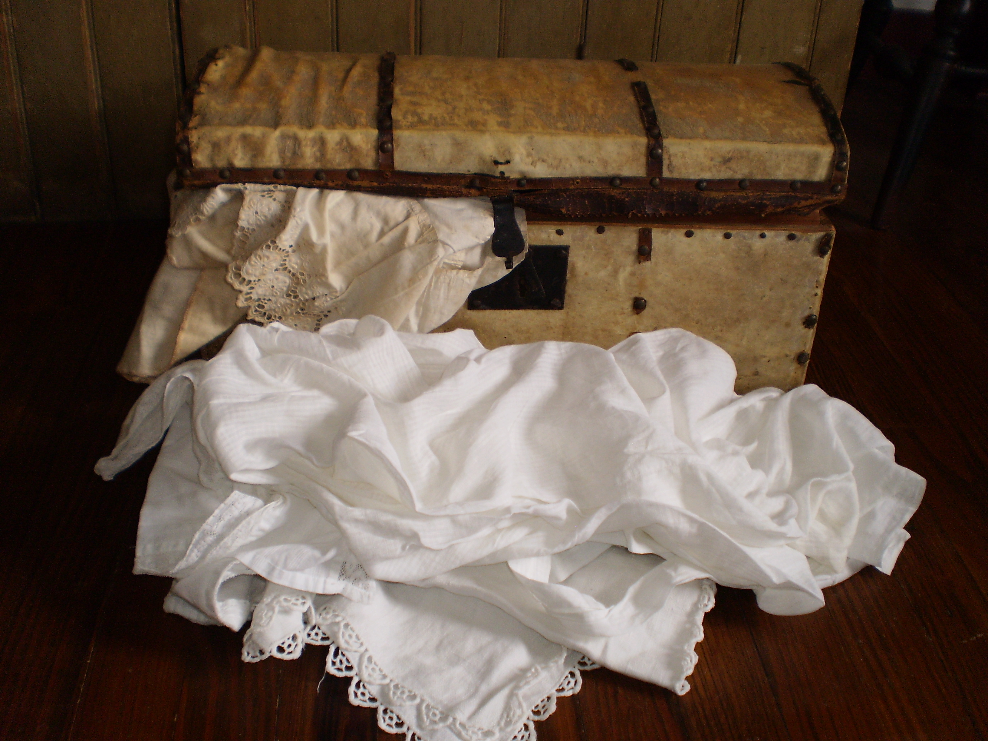 I spent the entire summer scouting for antique fabric and lace, so I currently also have a good supply of exquisite whites for dresses and undergarments.