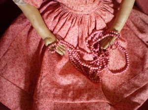 Yesterday I was cartridge pleating the skirt of a reproduction c.1830’s baby dress and on the spur of the moment decided to make a quick how-to video.  Totally unscripted and off the cuff 🙂 , but hopefully helpful to any of you who would like to add more fullness and a marvelous period detail to your reproduction Izannah Walker doll clothing.  You can easily modify the skirt of my Izannah Walker Doll Clothes Pattern to change from a gathered to cartridge pleated skirt.