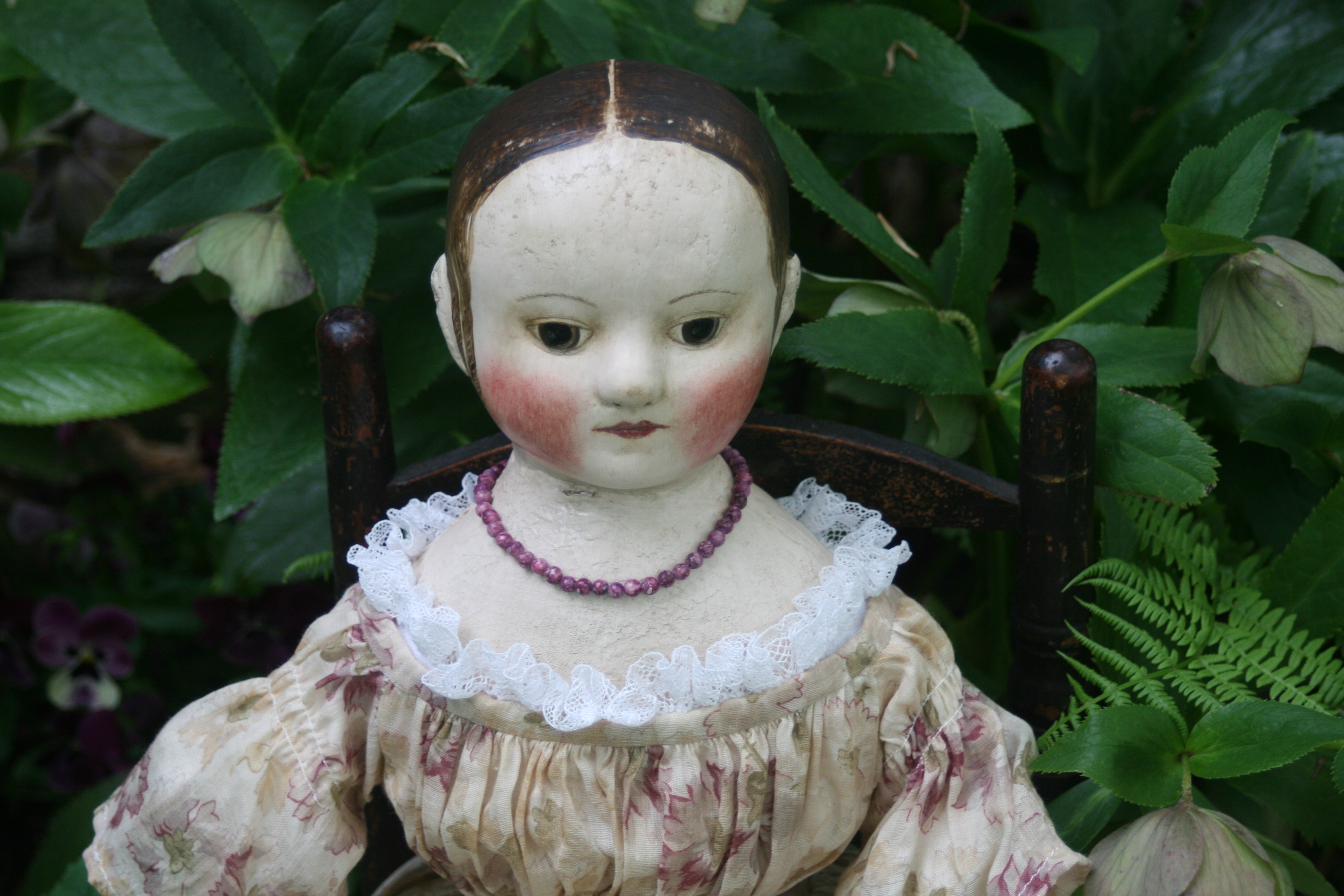 I can hardly believe that this little sweetie is going to be mine! She is exactly as imagined her to be. She looks absolutely divine in her darling spring dress and antique beaded necklace! I love the detailing in the sleeves and the big tuck in her skirt.