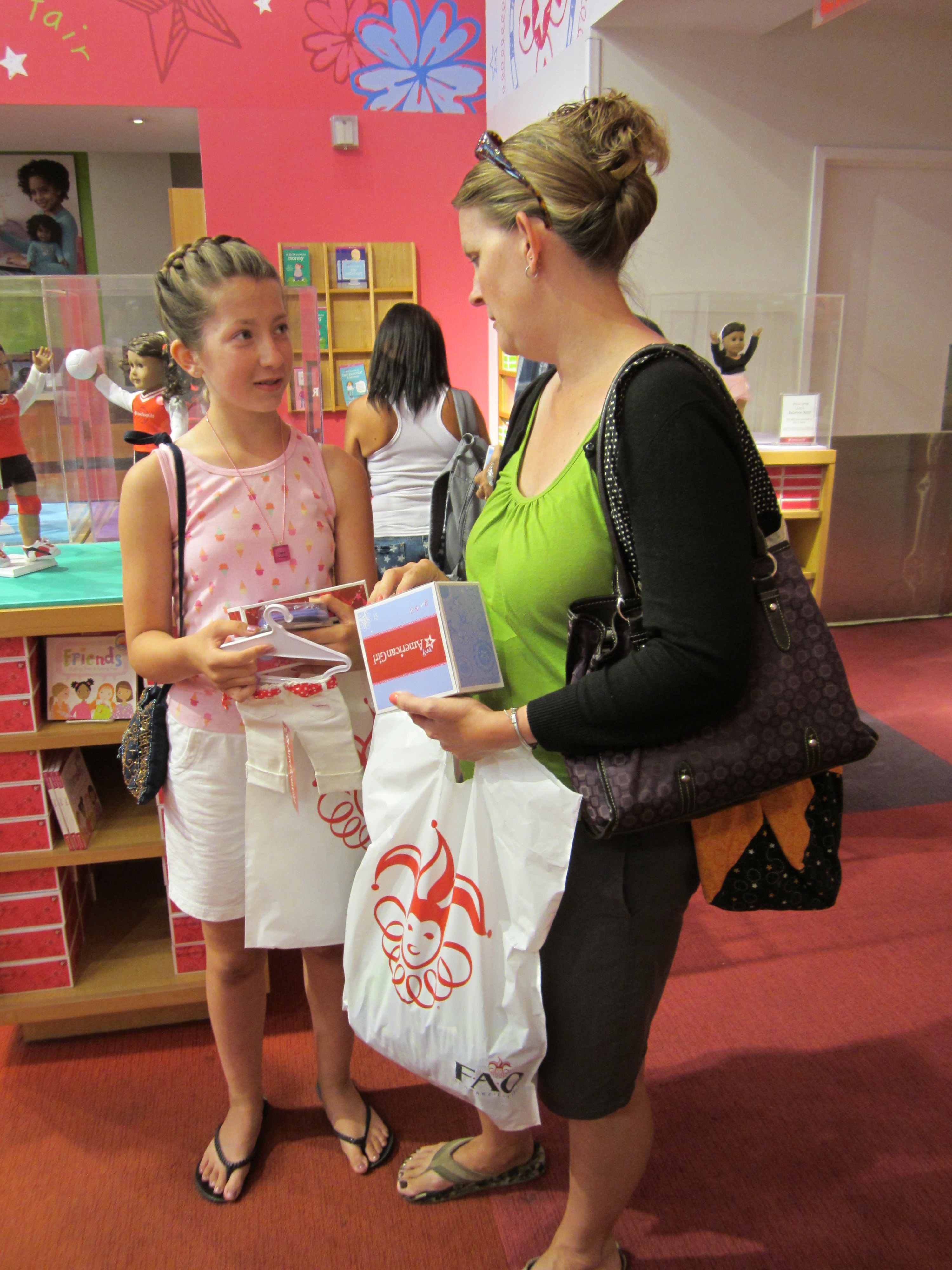 I can happily say that when you are a doll collector and doll maker, buying a new dress for one of your dolls is every bit as exciting now as it was during childhood. I am equally as thrilled with this dress as my 11 year old niece was, with her carefully chosen purchases, during a recent trip to The American Girl’s Place in New York. The love of dolls runs in our family!