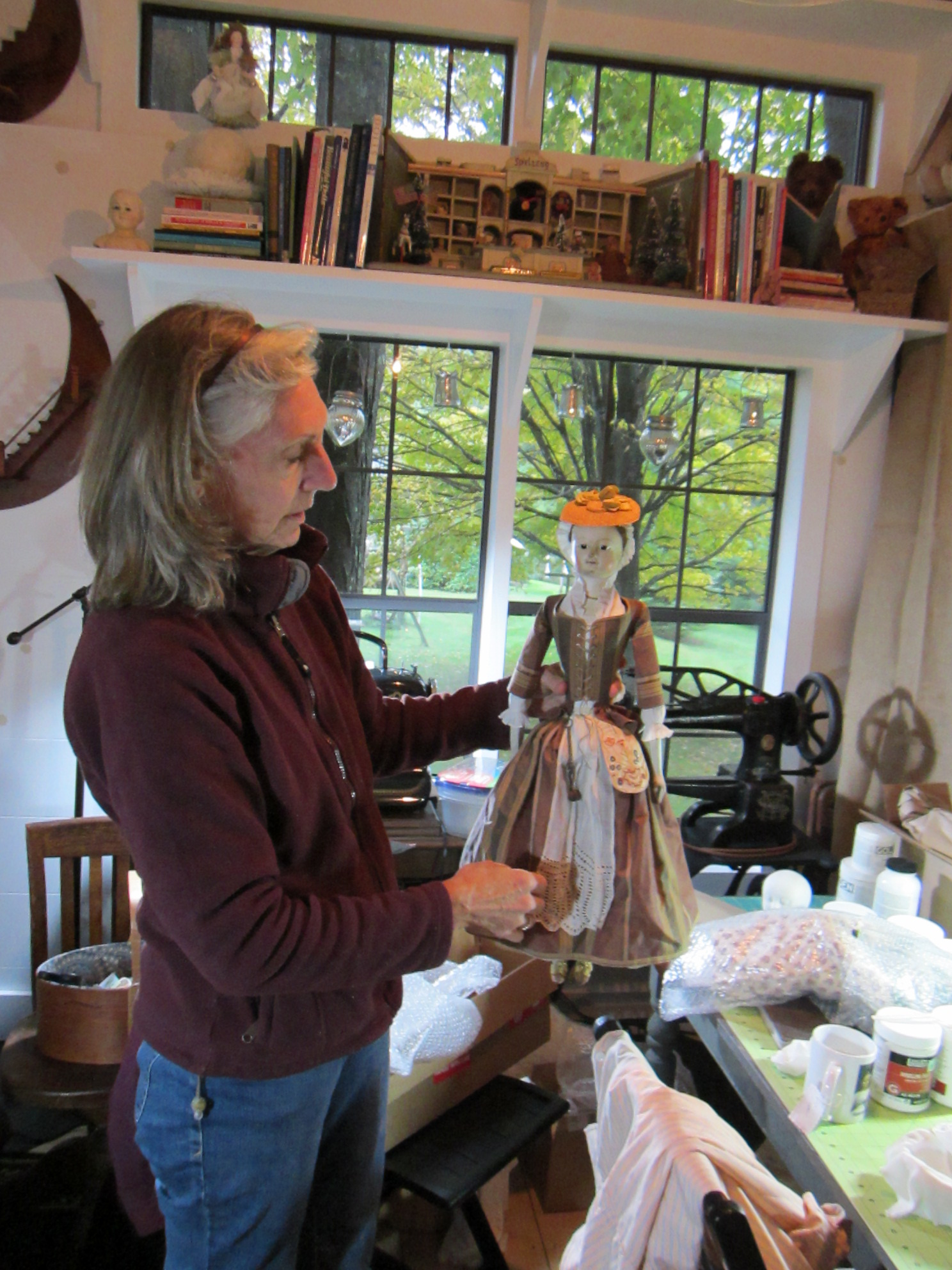 All ready and waiting for everyone to arrive at my studio!The first morning of the retreat and already hard at work…Day 2 started out with a “road trip” to the home of a local doll dealer and collector who very generously gave us a tour of her private collection, which includes this glorious large Izannah Walker doll!