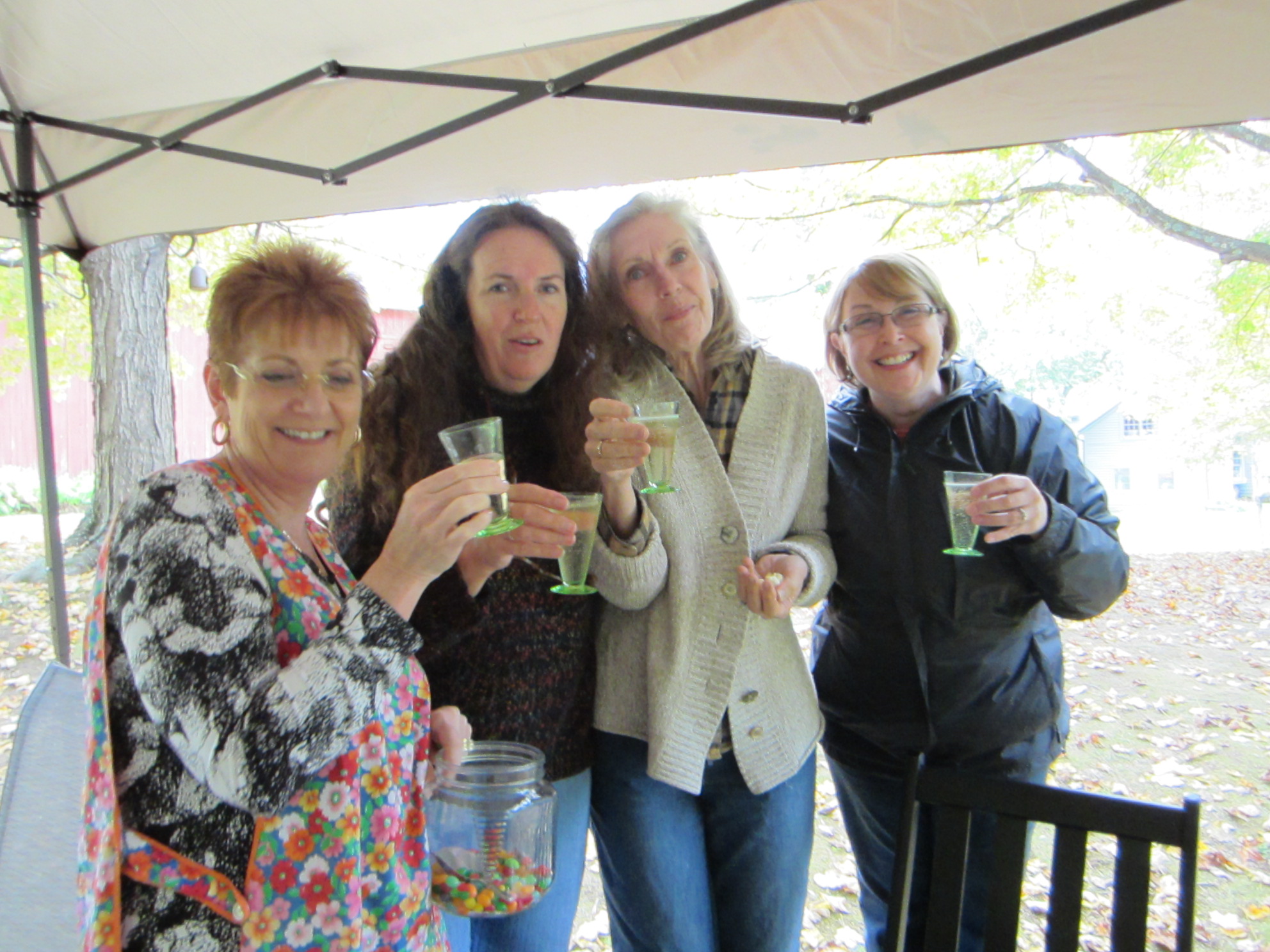 Susie and two of my dolls, the one on the left came back to visit during the retreat and to pick up her new sister, on the right.Another visitor to the retreat was Peggy’s wonderful new Queen Anne wooden, made by Kathy Patterson.A champagne and jelly bean toast to celebrate a successful end to Part 1 and the first half of the retreat 🙂One last hug at the end of day three! Vicki, Peggy, Susie and Charlotte the world’s most wonderful quartet of doll makers!!!