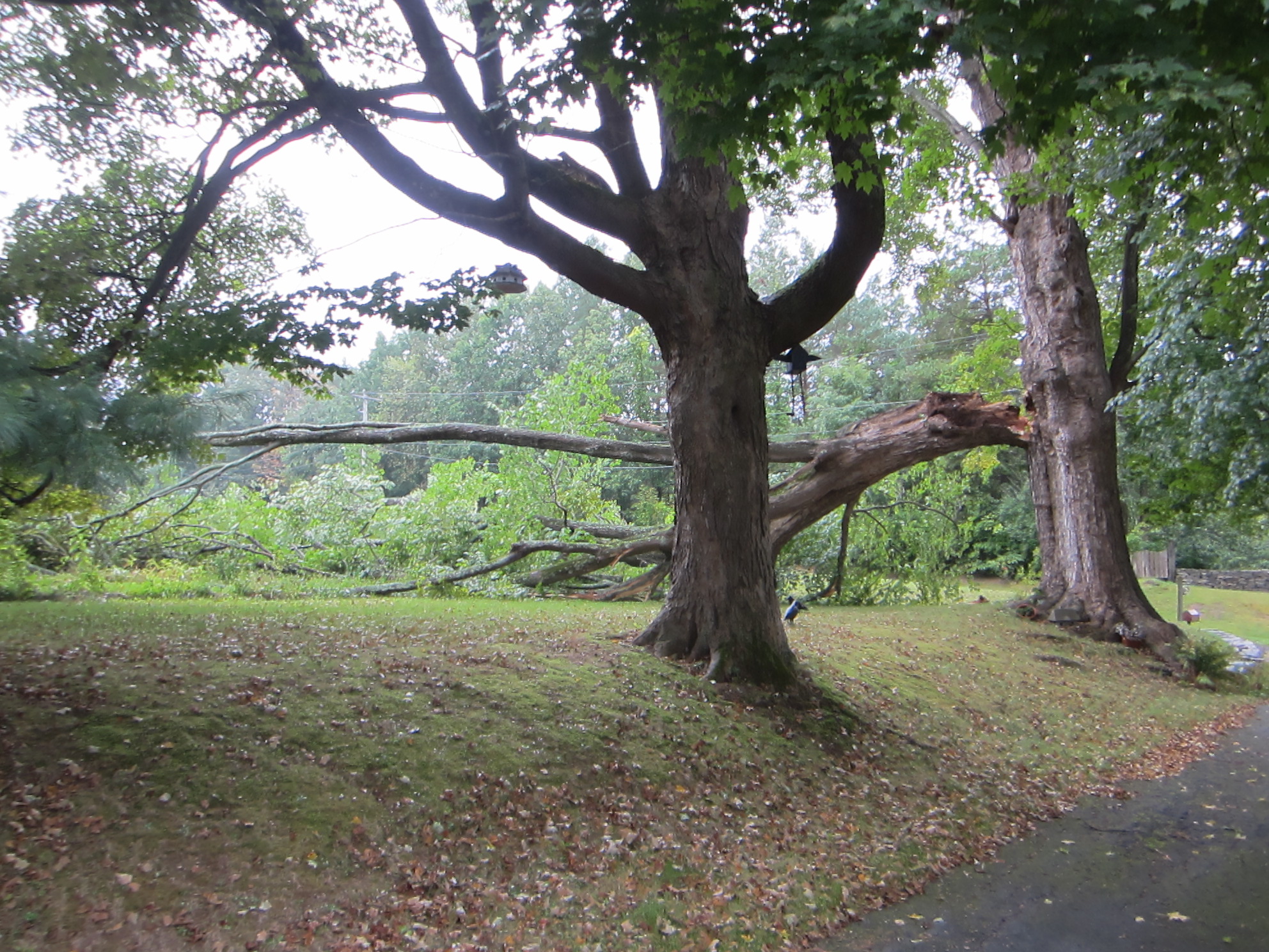 Just as we were about to board our return flight on Monday afternoon, I received a call from my son telling me that one of the huge maple trees in front of our house had cracked, split and 1/3 of the tree had fallen down. thankfully it did not fall towards the house
