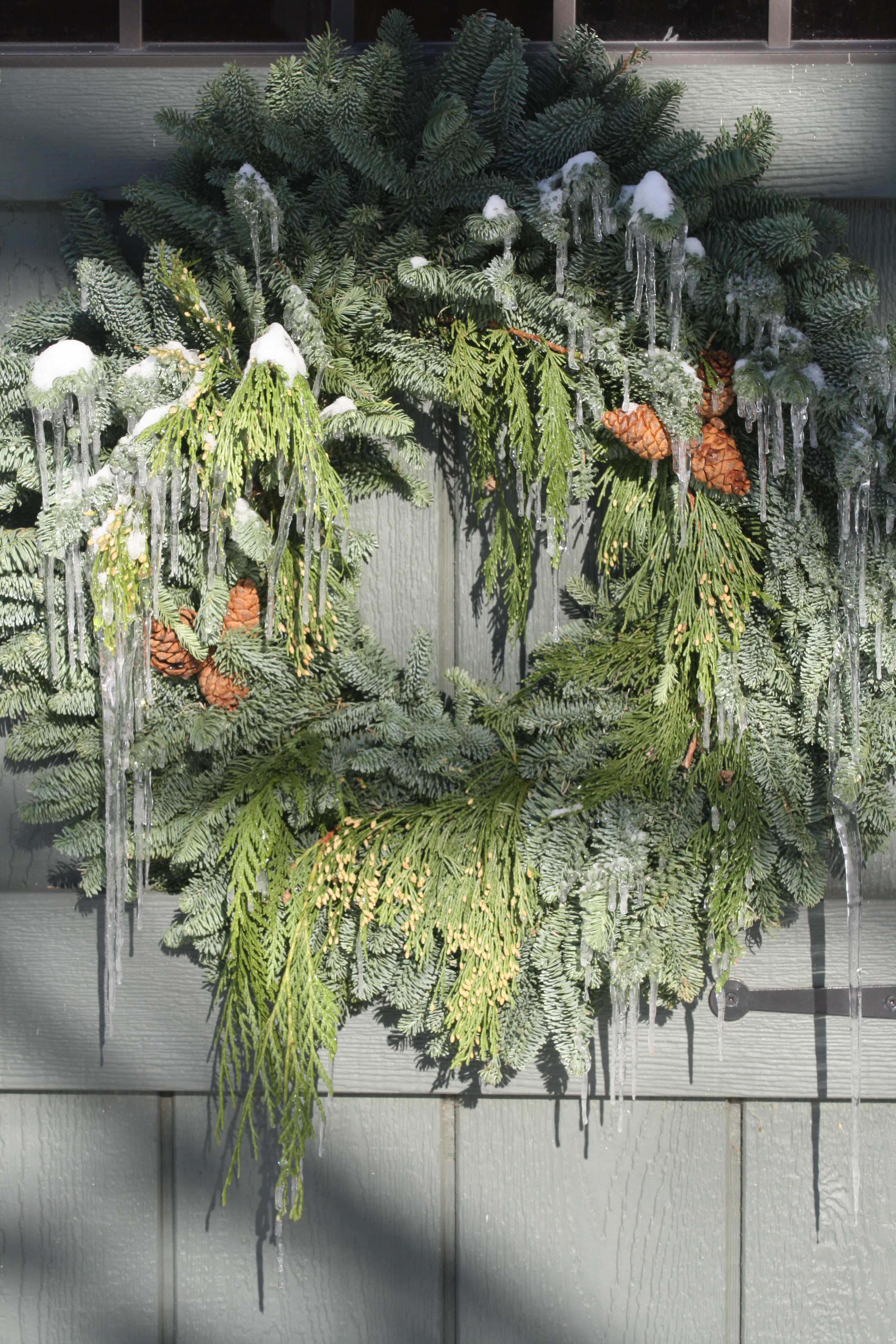 It’s warmer here today too and the snow is starting to melt. We still have plenty, but I don’t think it will last till Christmas. The wreath is on my studio door, so I couldn’t resist snapping a photo of it too, on my way out to photograph Marilyn’s doll. I have a real fondness for icicles.