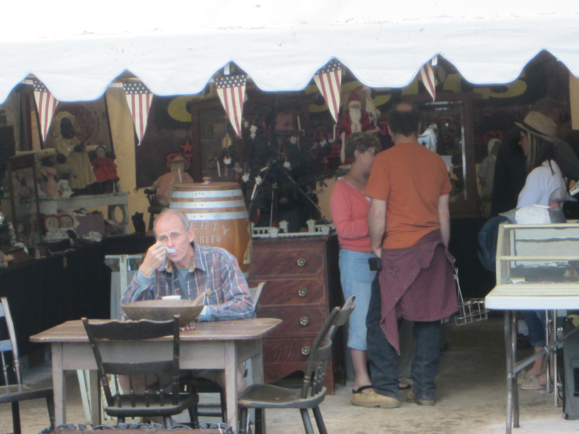 Chandeliers were a very popular item at Brimfield this year.Lots to see…A great counter!We’ve owned and sold several similar carousel horses, so it was fun to see this one and compare prices.Loved the train!A terrific paint brush advertising display 🙂so cool…Yes, there were dolls to see and drool over!a long day…An unplanned purchase, simply too great to pass up!An amazing sewing machine.I spent a few minutes trying to figure out how this machine should be threaded…We saw this little horse on Sunday at the Elephant’s Trunk and thought it looked like a lot of fun!Two of our Sunday buys, a child’s rocking chair and a Christmas tree fence.Good thing the dolls are willing to share… these antique nightgowns are destined to be summer dresses for me!
