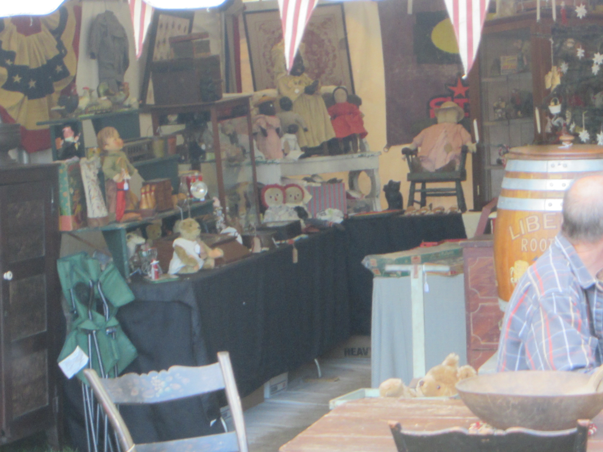 If you are a frequent reader of this blog you will know that I am constantly searching for antique fabrics to fashion into doll clothes. I hunt for antique quilts and garments that are far too worn to be restored, but are still in good enough condition to sew with. One of my favorite places to shop for antique textiles is at the May antique shows in Brimfield, MA. My husband and I had planned to spend two days in Brimfield, but heavy rains made Friday a washout, so we packed all of our shopping into one day on Saturday!