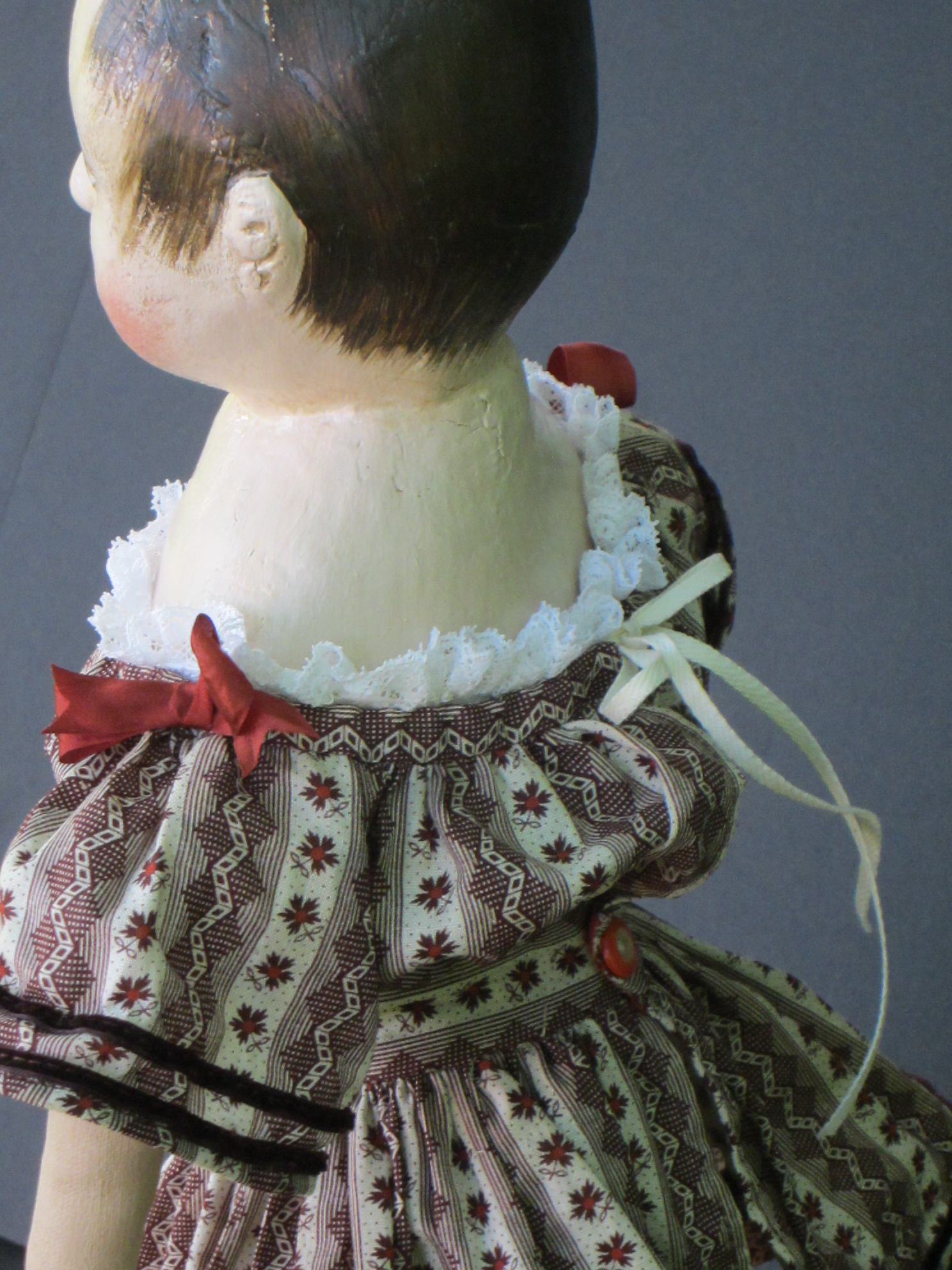 Last spring Mary and her antique Izannah Walker doll, Anna, came to visit. We had a wonderful day with Anna and spent several hours planning a special reproduction of Anna to add to Mary’s impressive doll collection. Mary has been amazingly patient, as I obsessed over all the fine details necessary to accurately reproduce a younger “sister” for Anna. I have to admit that it was a slightly daunting task, as the two dolls will be living in the same household and needed to be exactly the same size, so that they can share clothes. I wound up making numerous legs and feet before I was confident that I had correctly gotten Anna’s tiny bare feet just right!