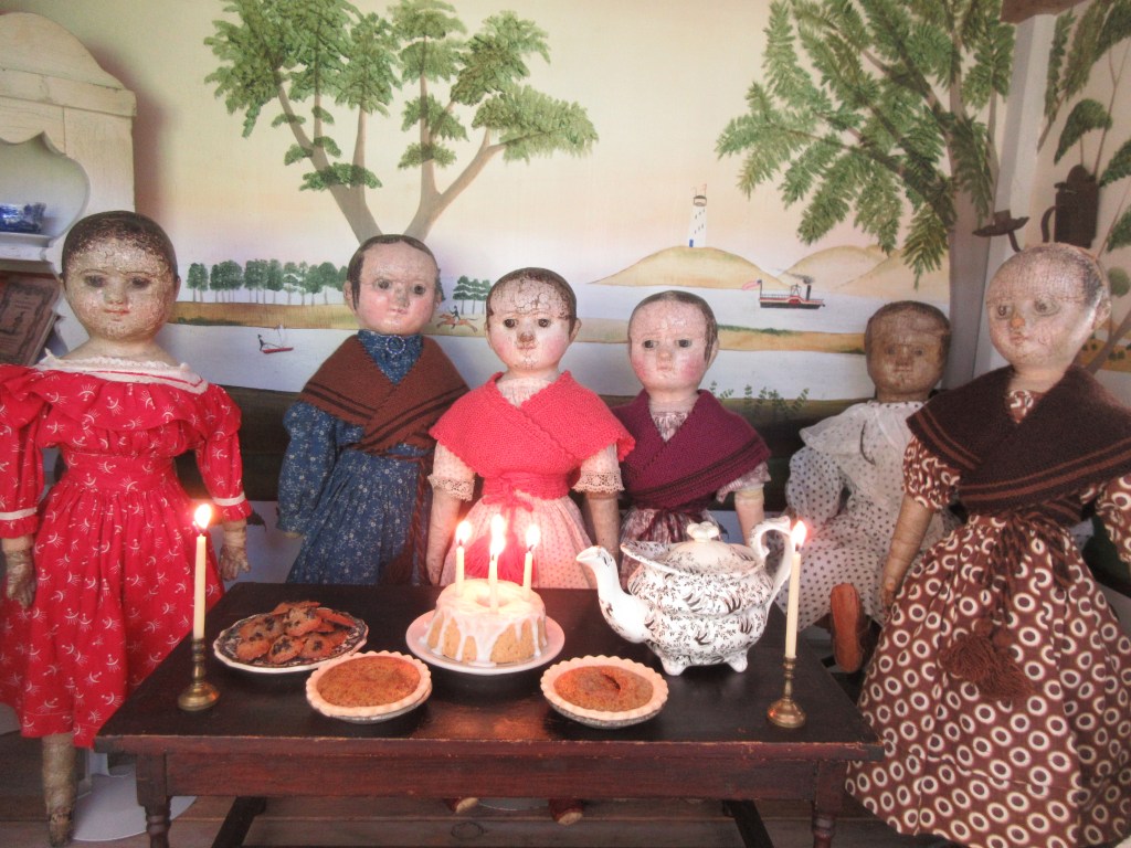 As you may suspect, all of the little Izannahs and I are excessively fond of bedtime stories! They positively insist on at least one story every night before they will quiet down and go to sleep. You are invited to come join us for a selection of nightly bedtime stories in celebration of Izannah Walker’s 204th birthday! Our celebration will begin this evening Saturday, September 25th, 2021 at 8:00 p.m. Eastern time, and it will continue at 8:00 p.m. every evening through the end of the month, culminating in the unveiling and sale of my latest reproduction Izannah Walker dolls on Thursday, September 30th. We do so hope you will be able to join us each evening for a story that is sure to bring you sweet dreams!