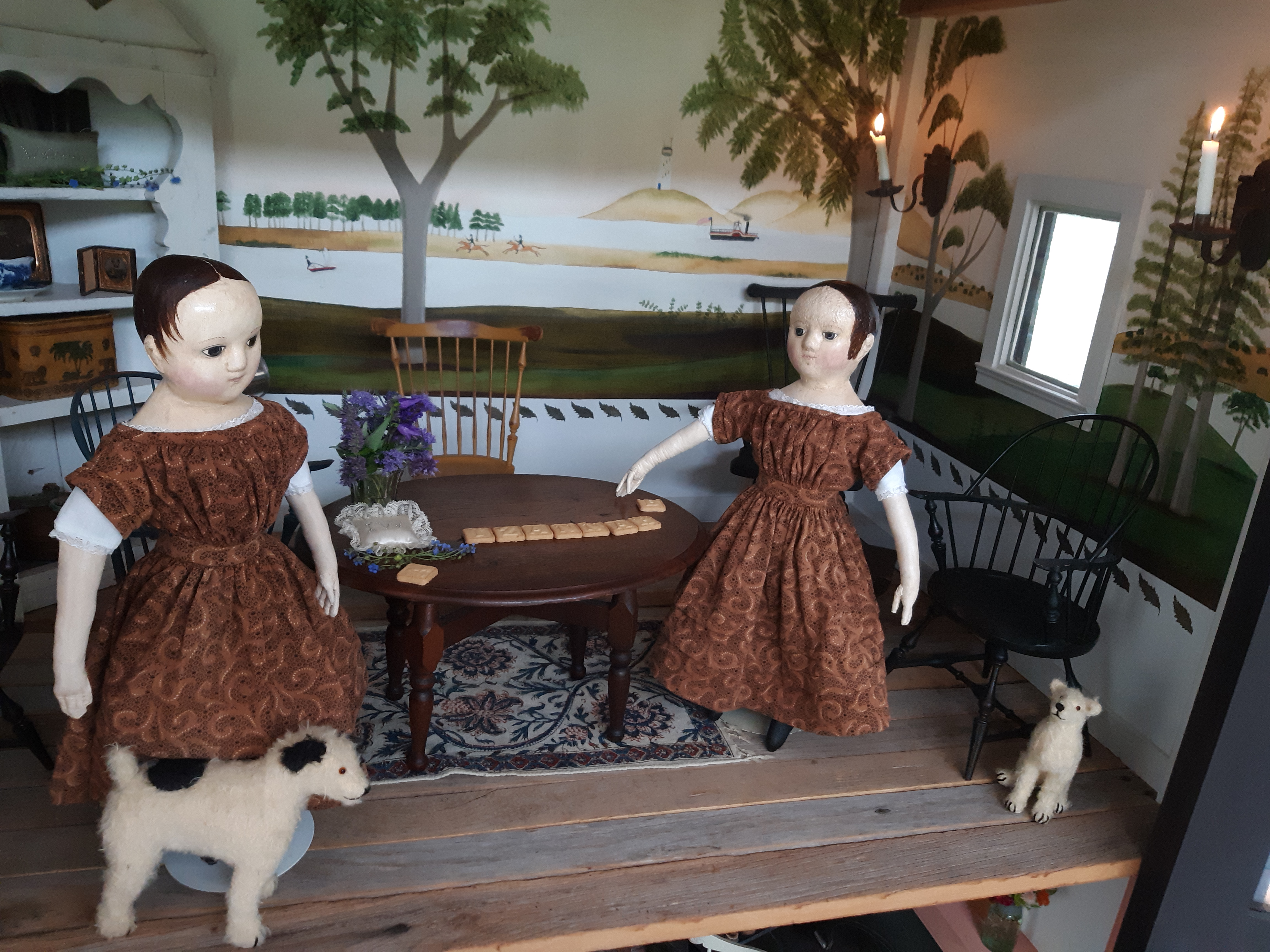 It is my pleasure this evening to introduce you to two charming young Izannah sisters who are looking to venture out beyond the confines of the very tall house & find loving new homes of their very own. In addition to offering these sweet cloth girls for sale I also have one party dress for sale. ❤