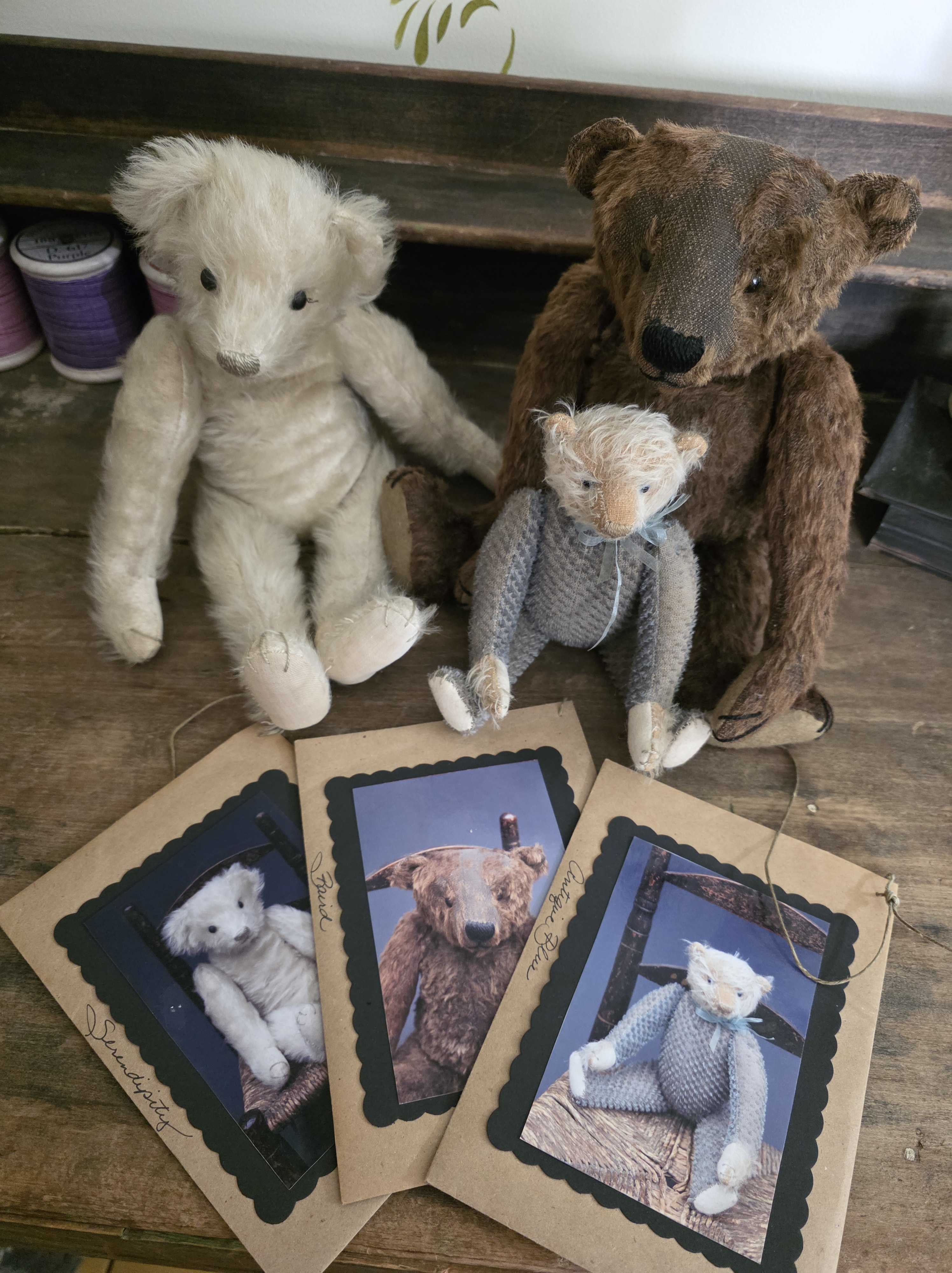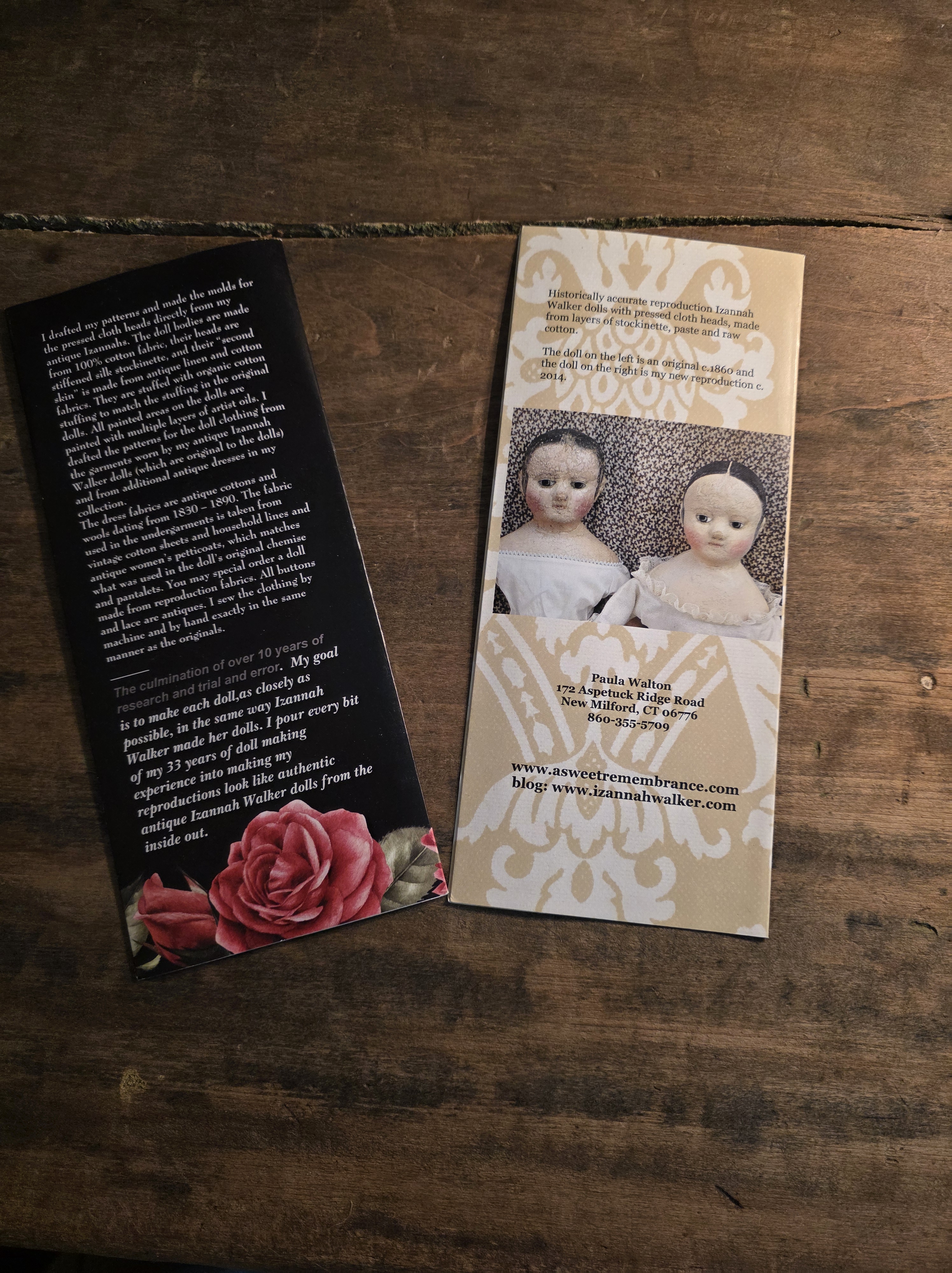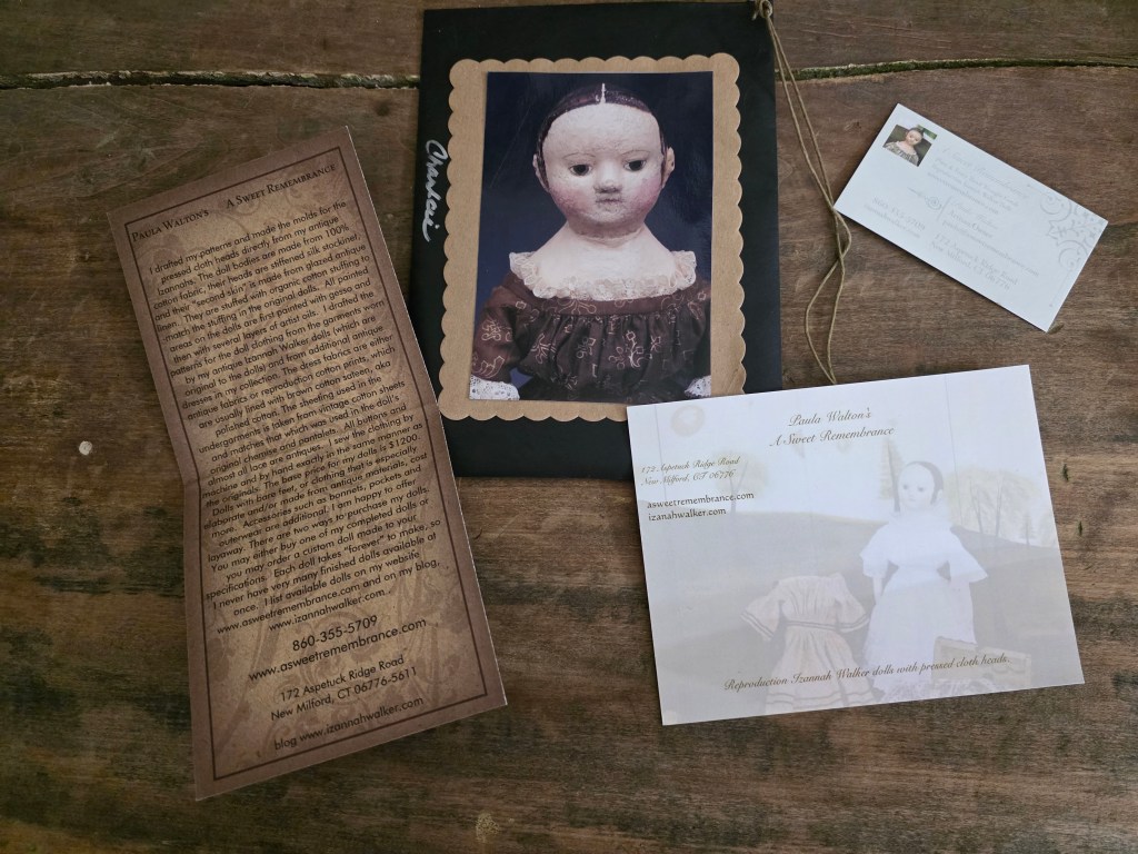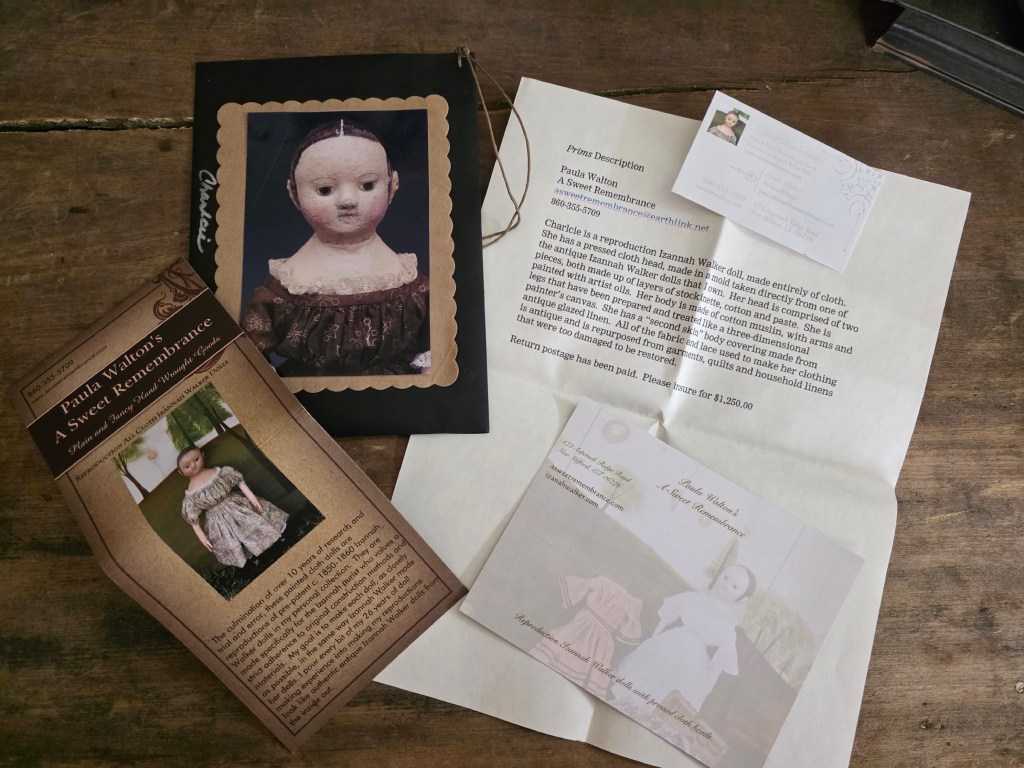 I’ve also posted images of all the information that I enclosed with four of my pieces that Prims magazine borrrowed for photography, plus my prototypes for all three of the bears. The sweet early reproduction of Isabeau was one of the very first ones that I made , and is one of only three of my reproductions that I’ve given individual names. My standard practice is to simply call all of them by the same names as my antique Izannah Walker dolls that their handmade molds were taken from. Clearly I am so very fond of the name Charlcie, which was the name of one of my maternal great grandmothers, that I eventually gave it to one of my antique Izannah Walker dolls that I acquired quite a while after the Prims article was published.