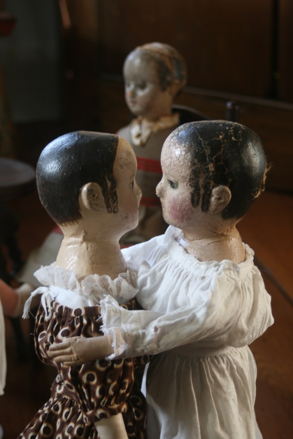 Years, and years, and even more years had gone by since the doll sisters had first been new playmates for sweet young girls and boys. It had been so very long ago that they remembered those days best when they were dreaming… Now in their waking life they lived with another dollmaker, of whom they were quite fond, because she loved them and took good care to make sure that they were safe and happy.