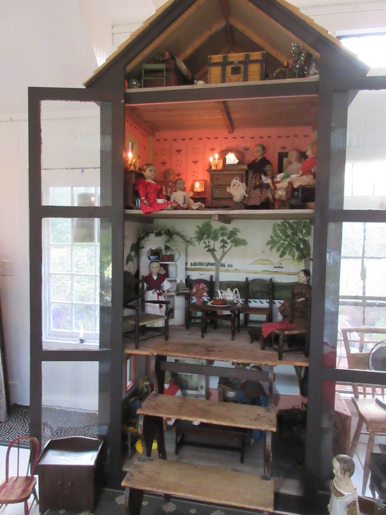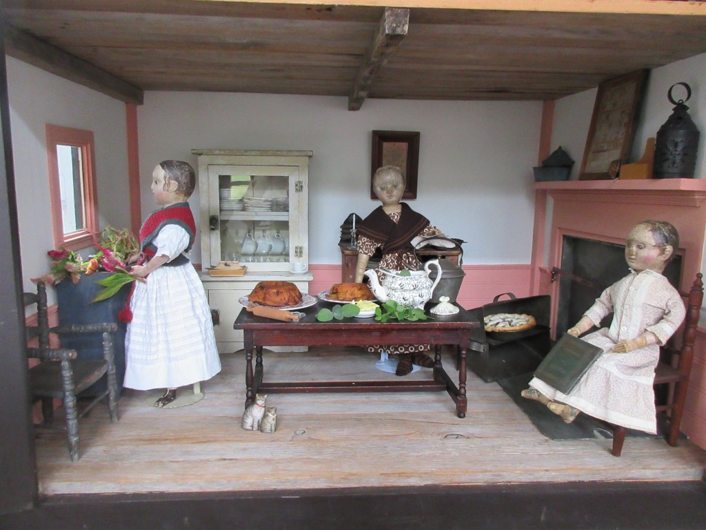 All in all I would say that this has been an extremely happy occasion for all of us here at the doll’s house. The girls had such a good time having you come vist and join in their party for Izannah Walker! They love having guests even more than they love getting presents… and speaking of presents, this year they received a new antique dry sink for their kitchen, which has made them all (except Izzybelle) very happy indeed! Izzybelle much prefers toys and clothes to kitchen furnishings! She was quite pleased with their toy tin stove, photograph album and new knitted bosom friends. ❤