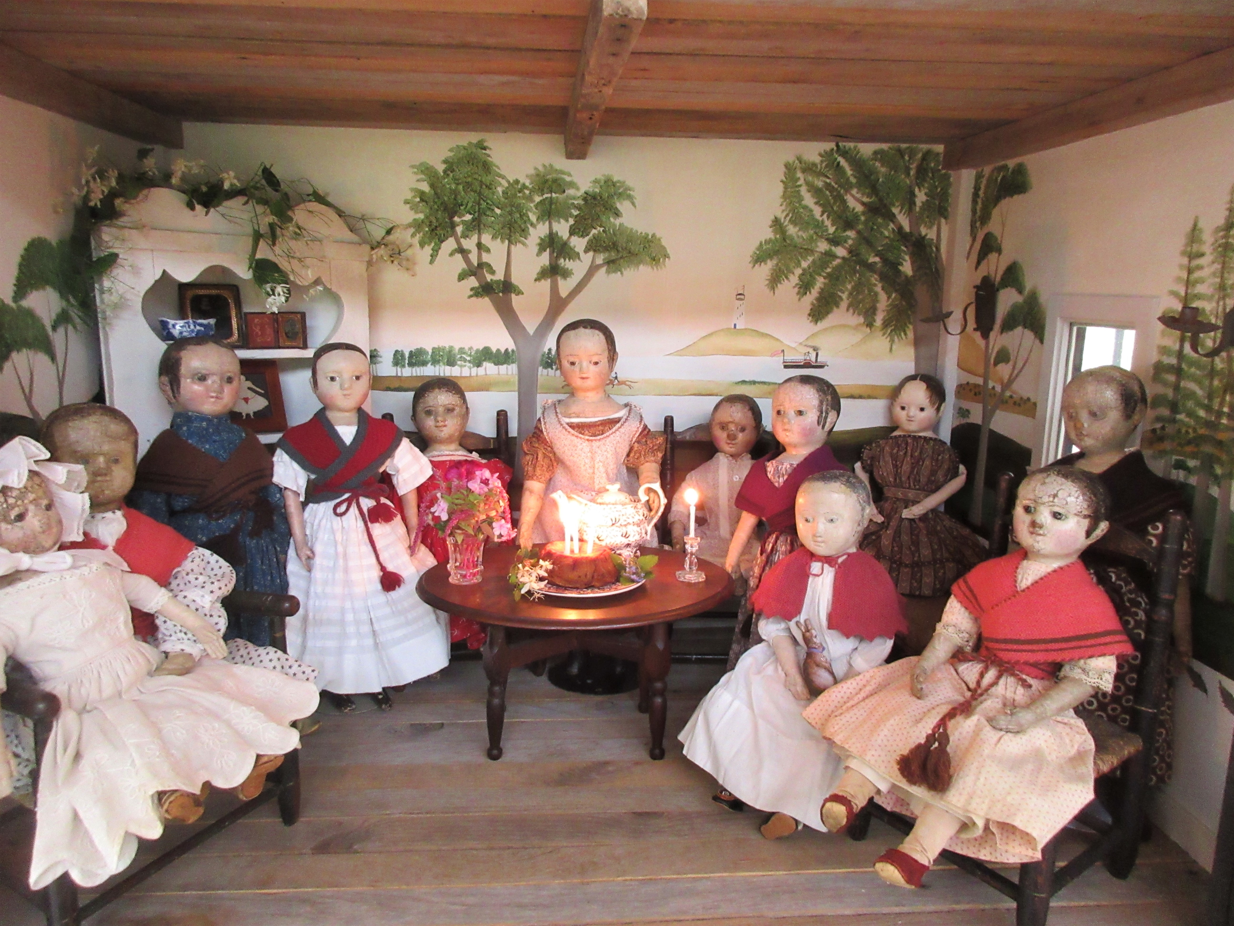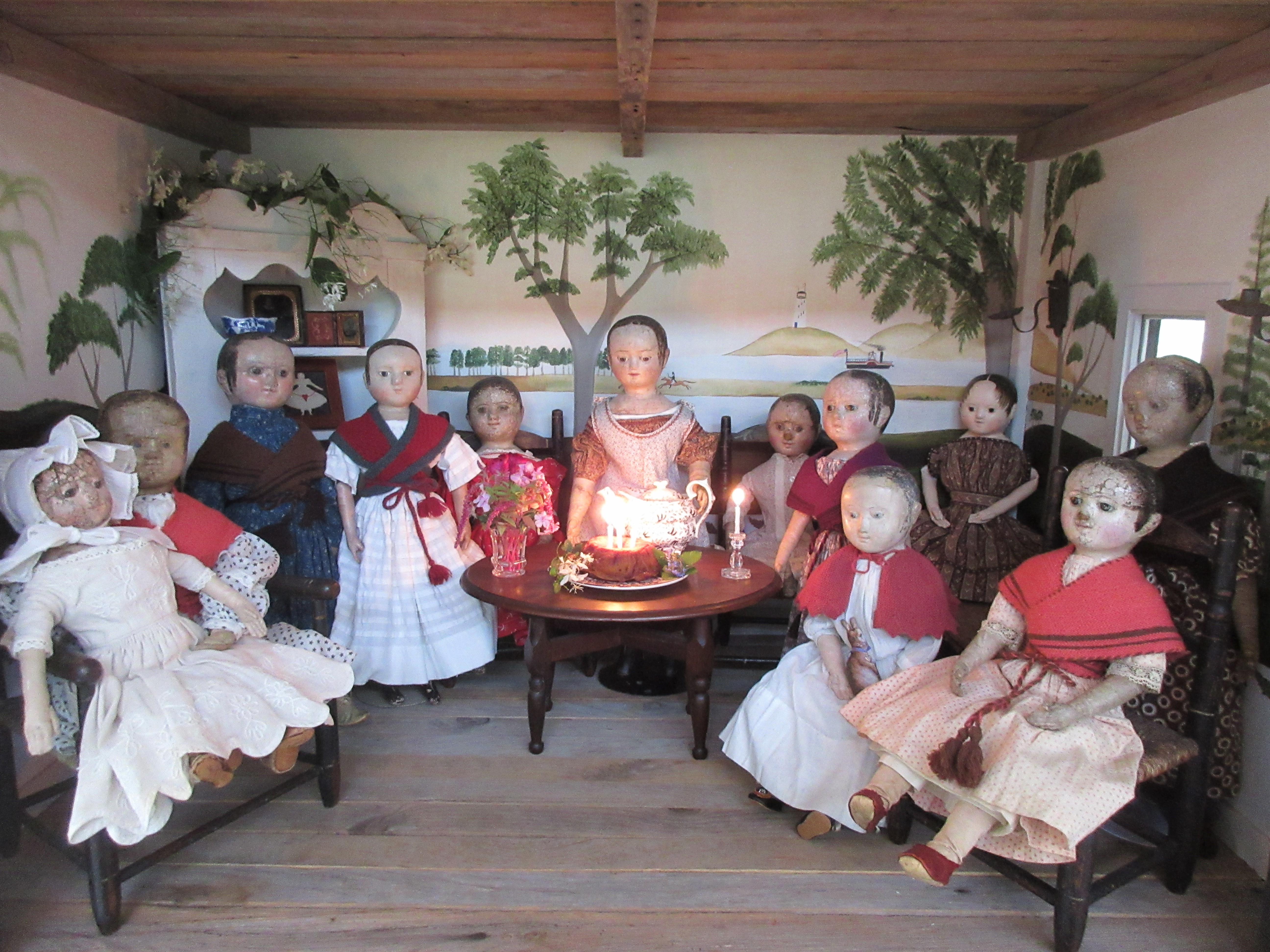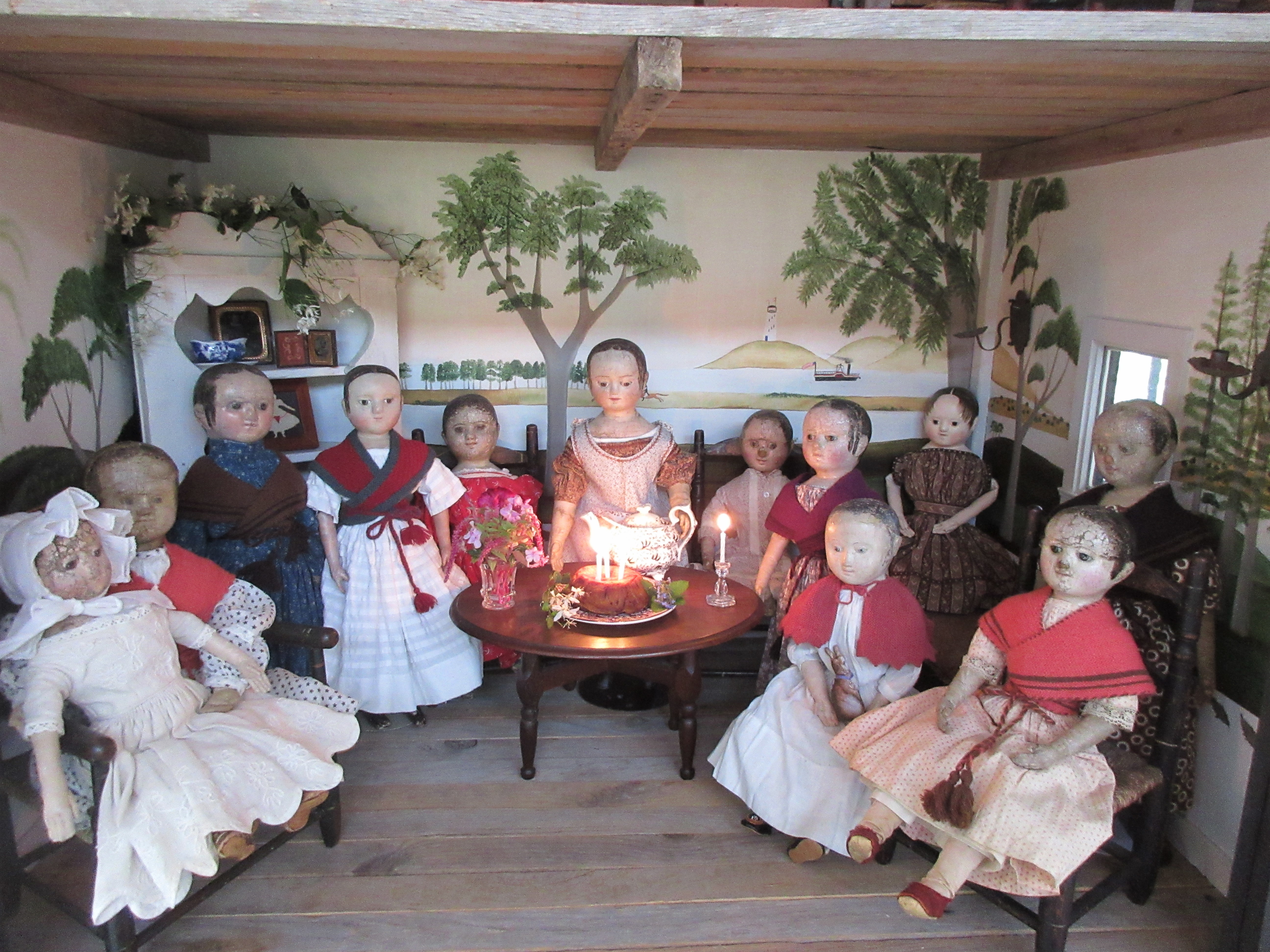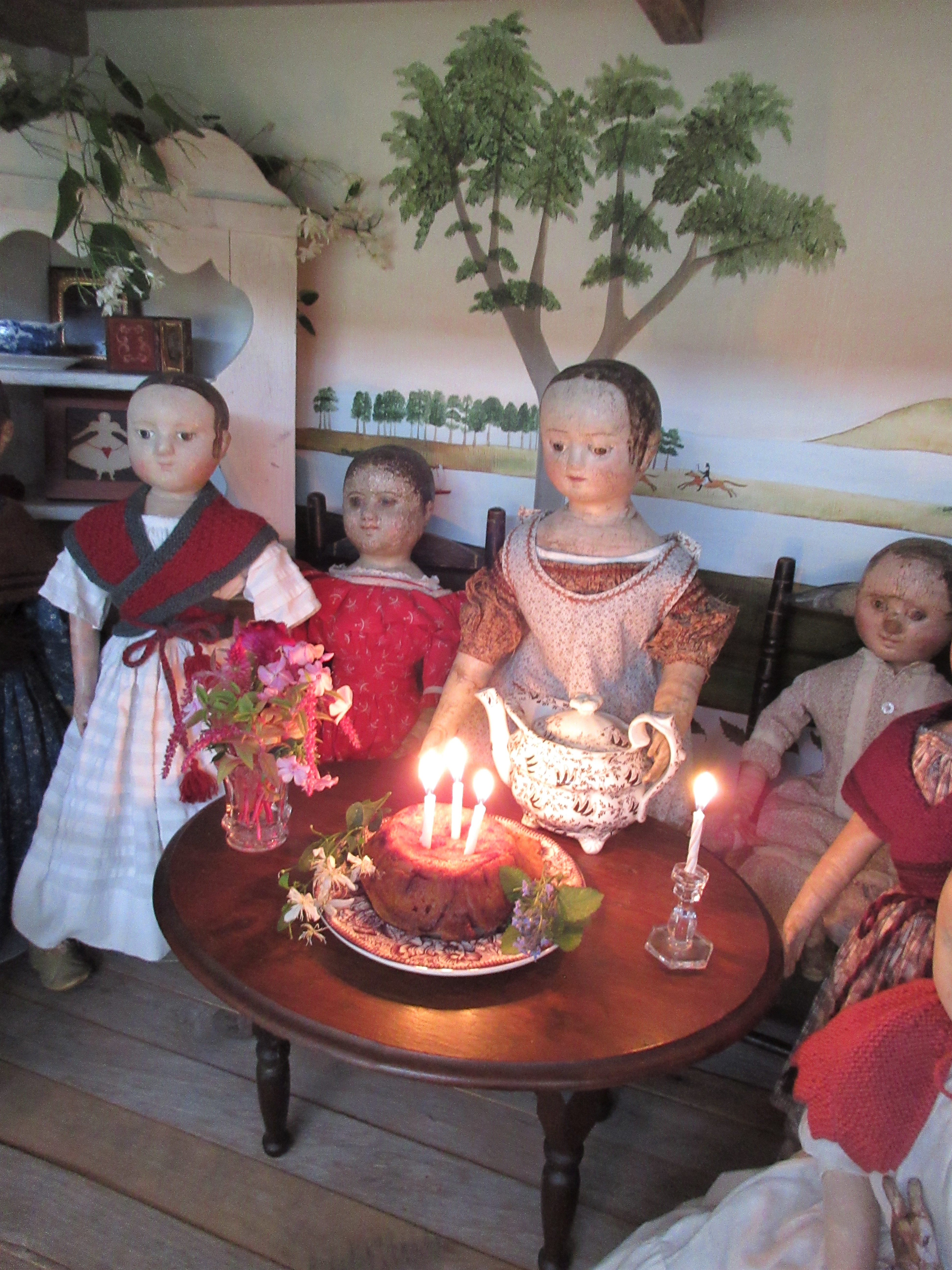 Thank you all for coming to our Birthday Party for Izannah Walker! The dolls are going to tidy up the parlor and kitchen, then spend a little time enjoying their new birthday presents. ❤ Please come back tonight for our slumber party!