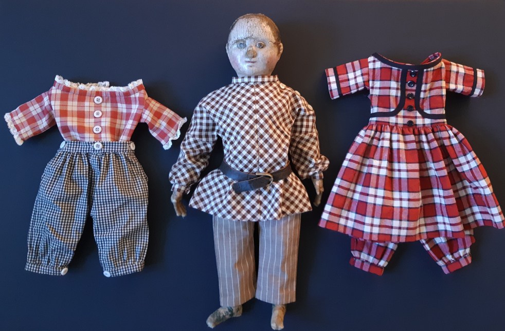 – My doll clothing patterns include two dresses, two petticoats, a chemise and pantalettes, all of which were drafted from original clothing belonging to one of my antique Izannah Walker dolls.