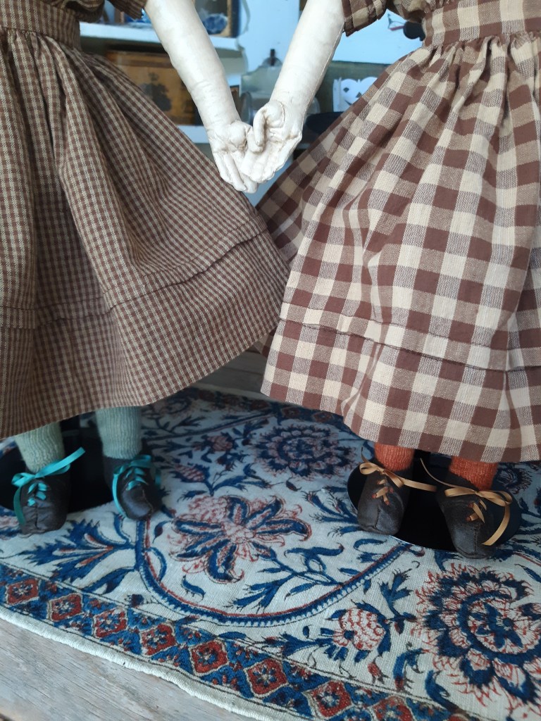 In between working on new reproduction Izannah Walker dolls I have been testing out the large Cut & Stitch fabric, plus working on comprehensive instructions for different ways of constructing and making both sizes of Cut & Stitch dolls. I love the new organic cotton sateen fabric that the larger Flat Izzys are printed on and I already have the one important method you need to use when sewing with this new fabric identified. So I’m ready to offer them for sale!