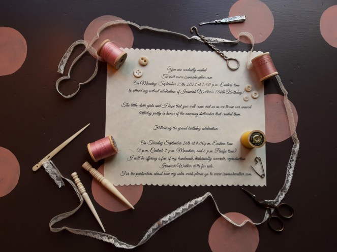 If you fondly remember seeing or making any of Rainy Crawford’s great doll patterns, you may want to look back at some of these posts: https://izannahwalker.com/2013/06/13/a-very-busy-week/ , https://izannahwalker.com/2013/06/14/flag-day-june-14th/ , https://izannahwalker.com/2014/04/16/at-long-last-an-18th-century-doll-for-my-18th-century-home/