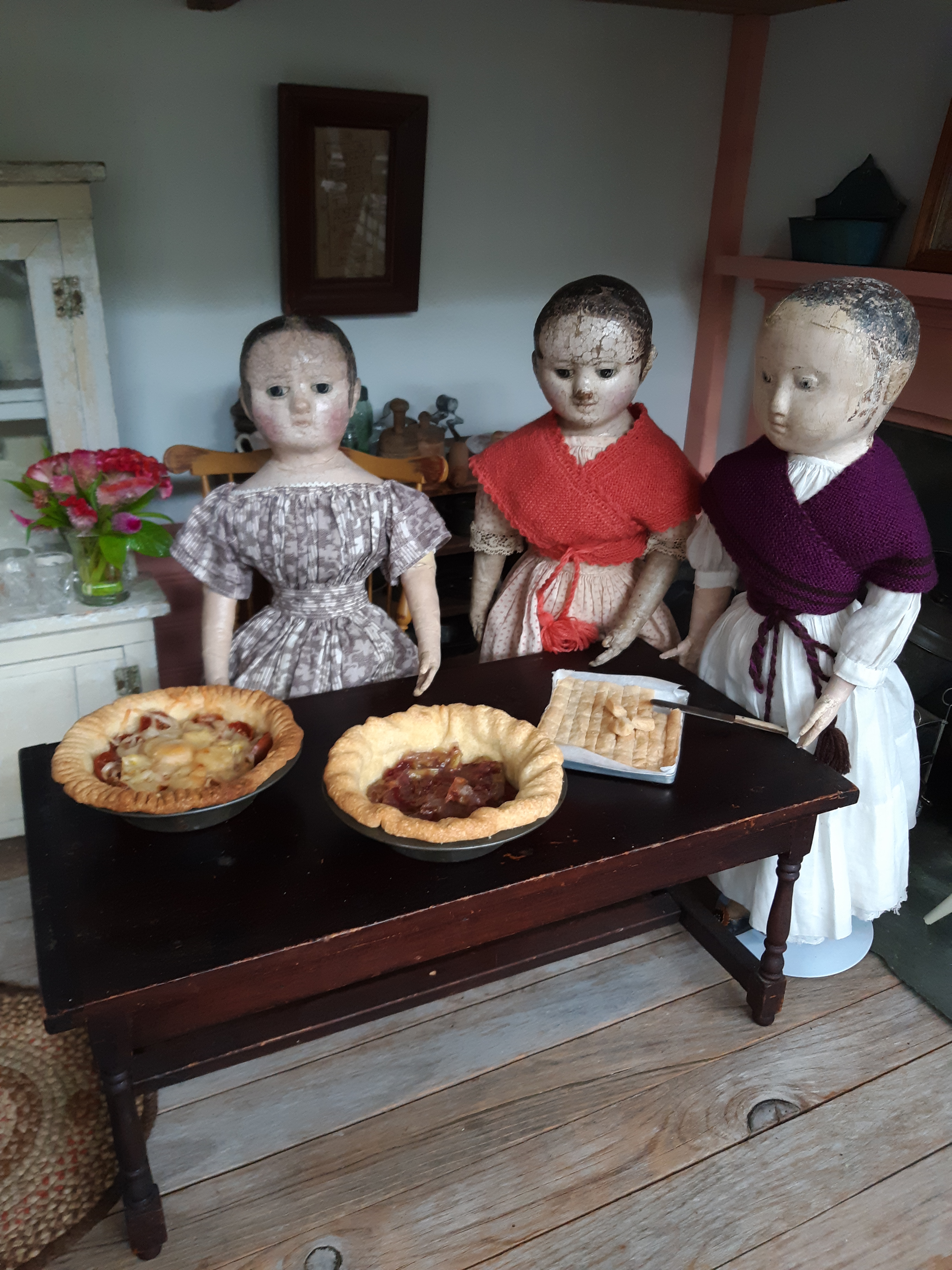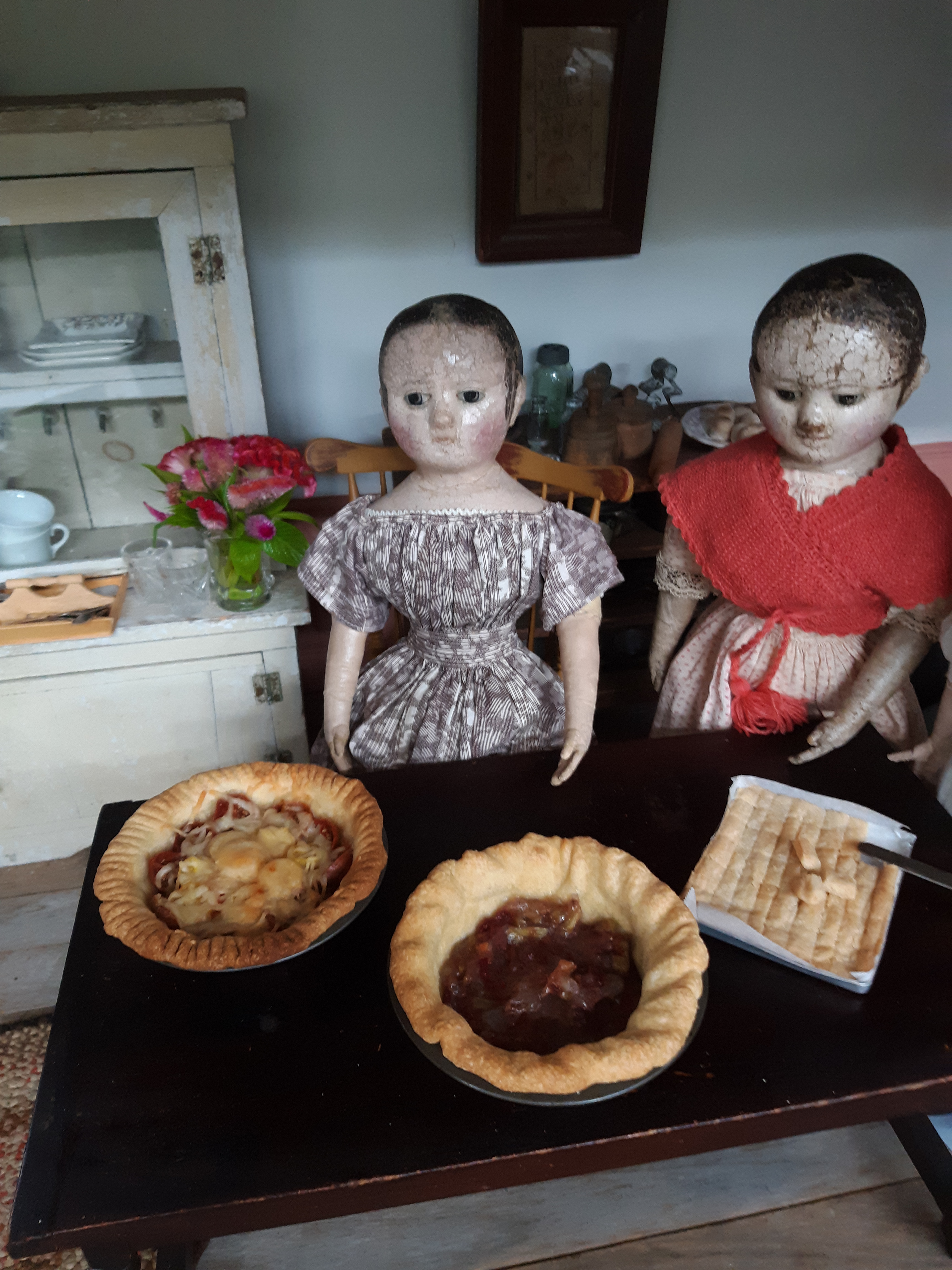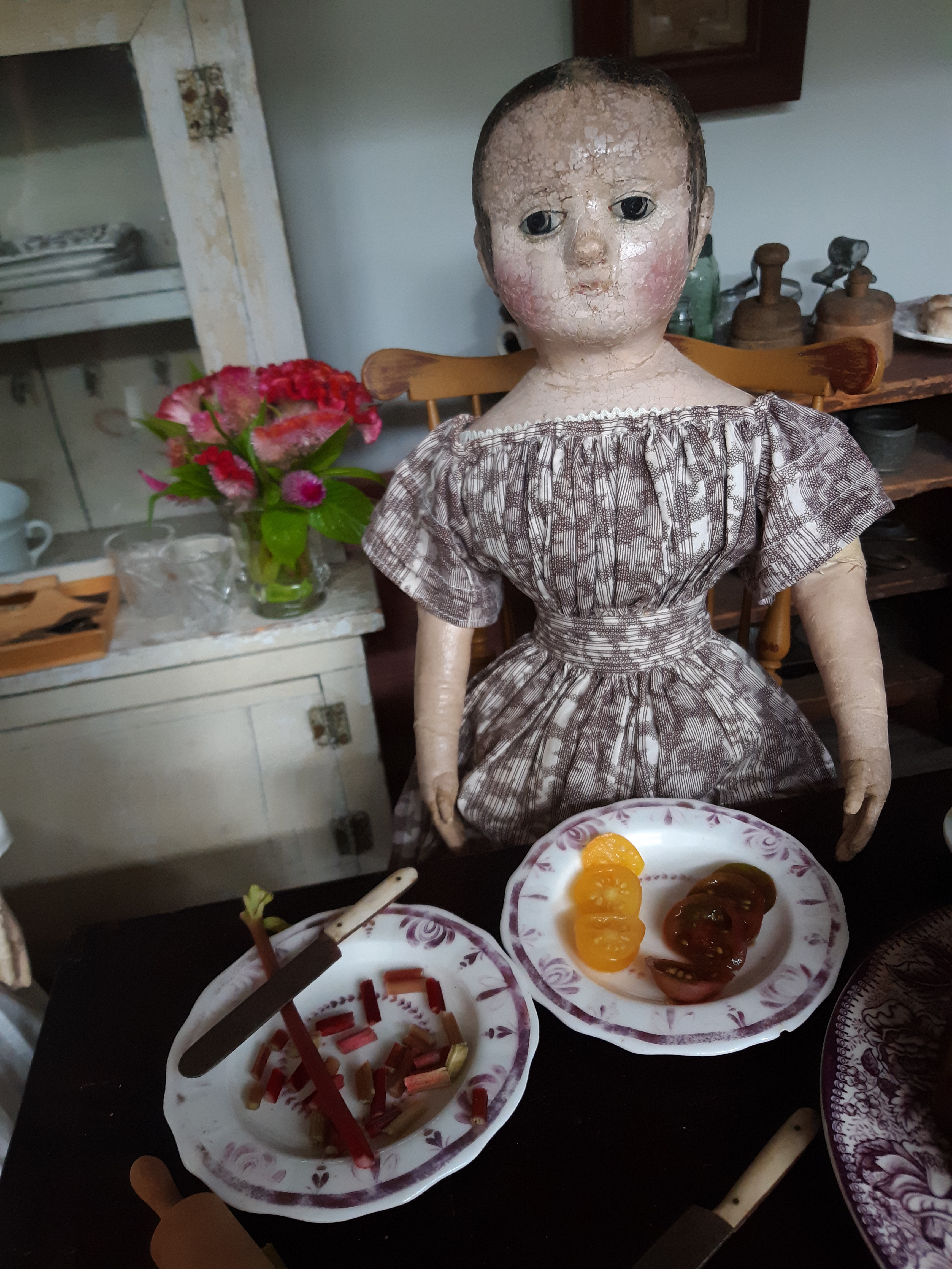 Did you guess that the tiny ice cream spoons in the photos are antique silver salt spoons? The doll’s routinely take turns polishing them to keep them bright and shiny.