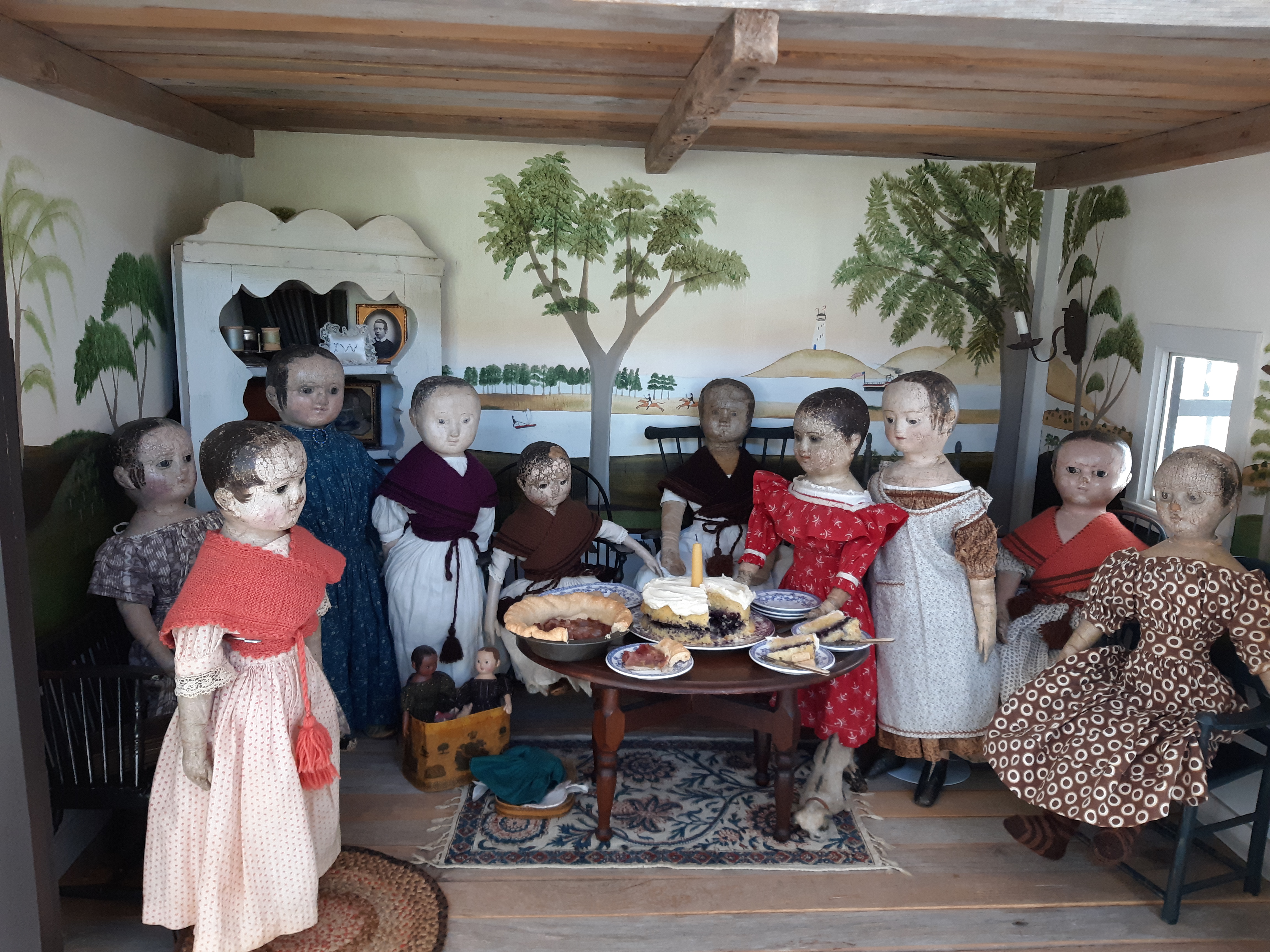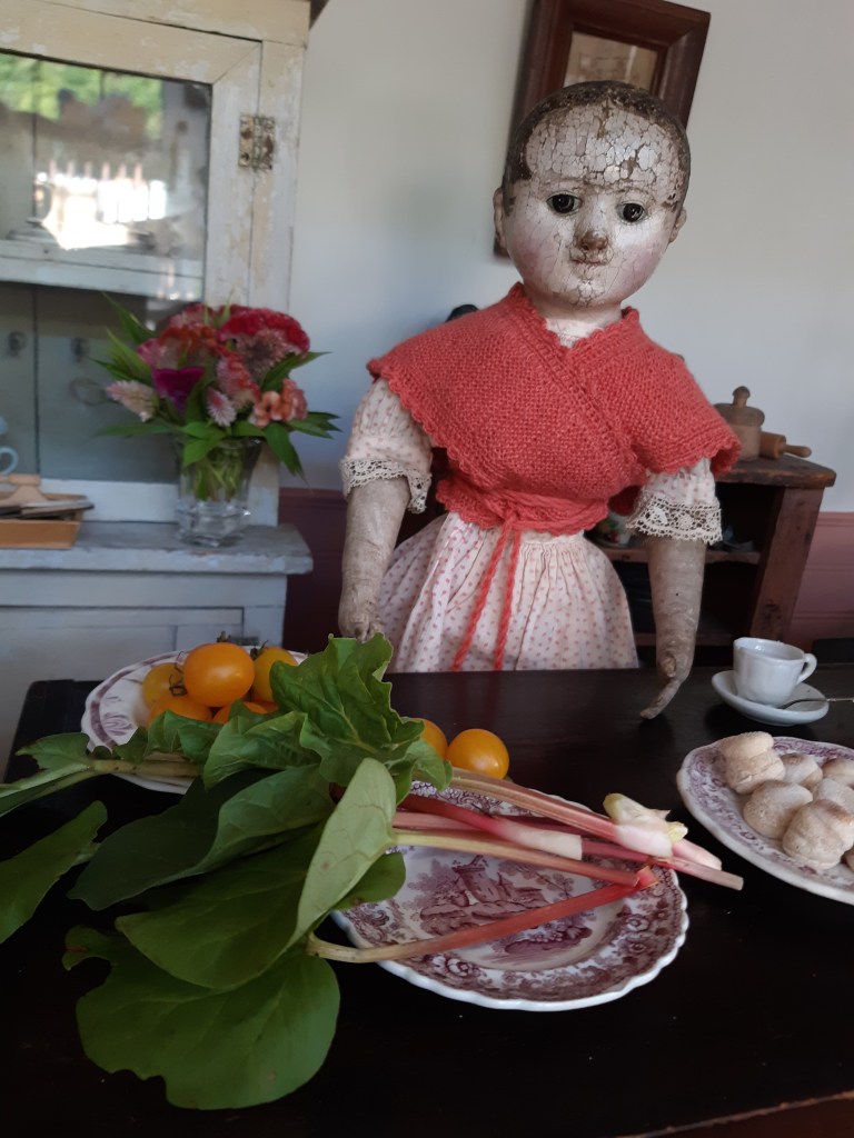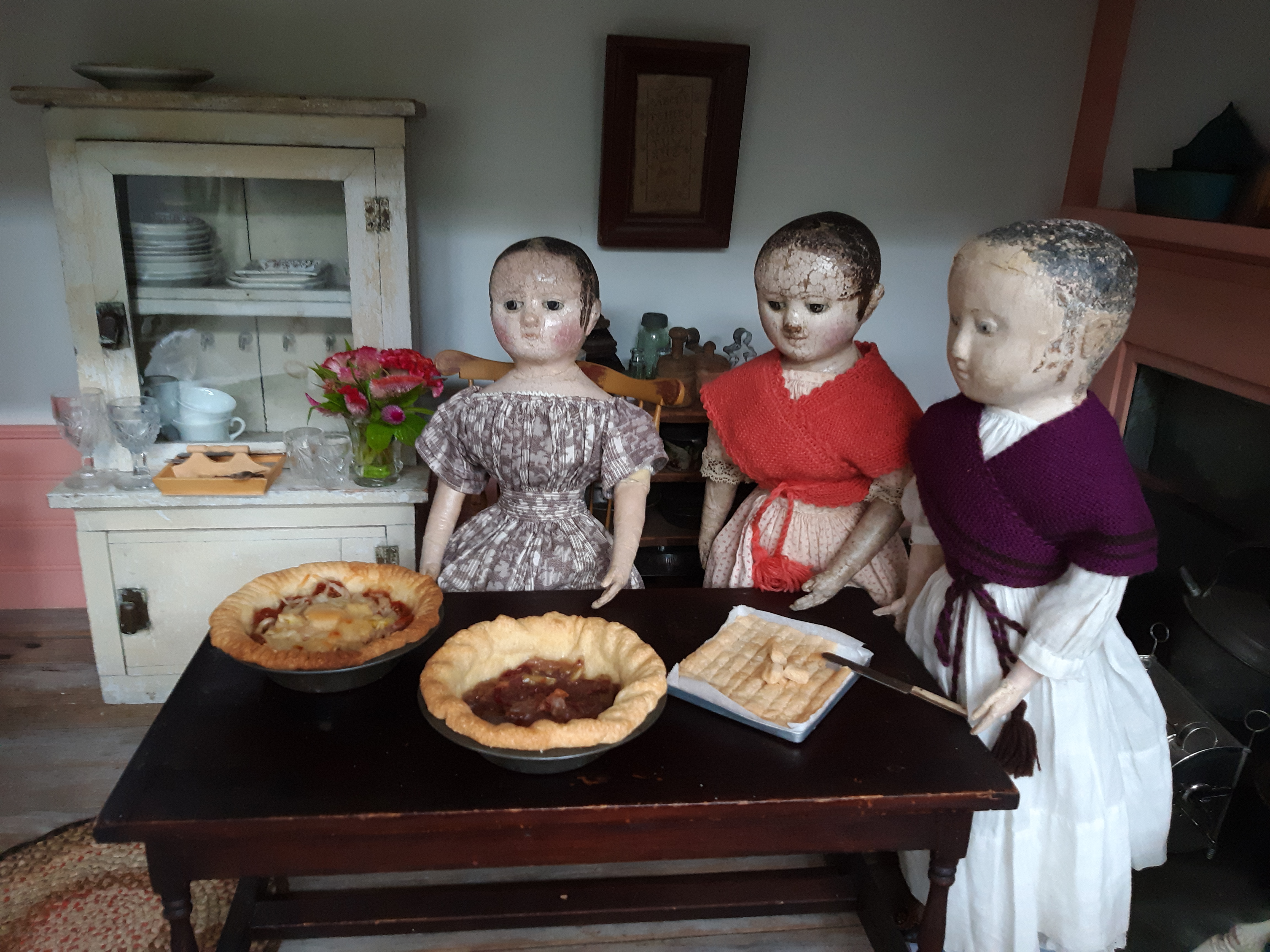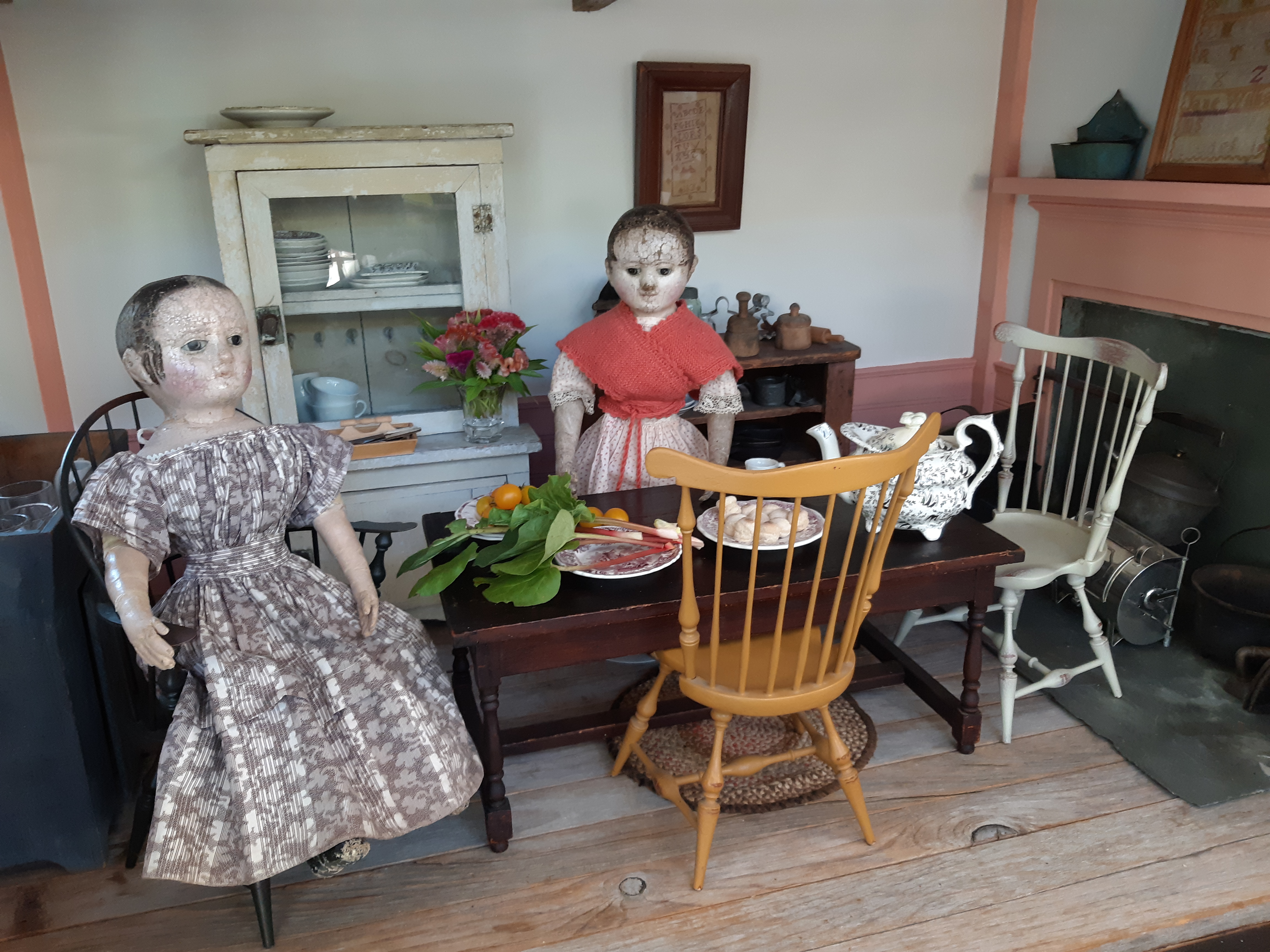 Did you guess that the tiny ice cream spoons in the photos are antique silver salt spoons? The doll’s routinely take turns polishing them to keep them bright and shiny.
