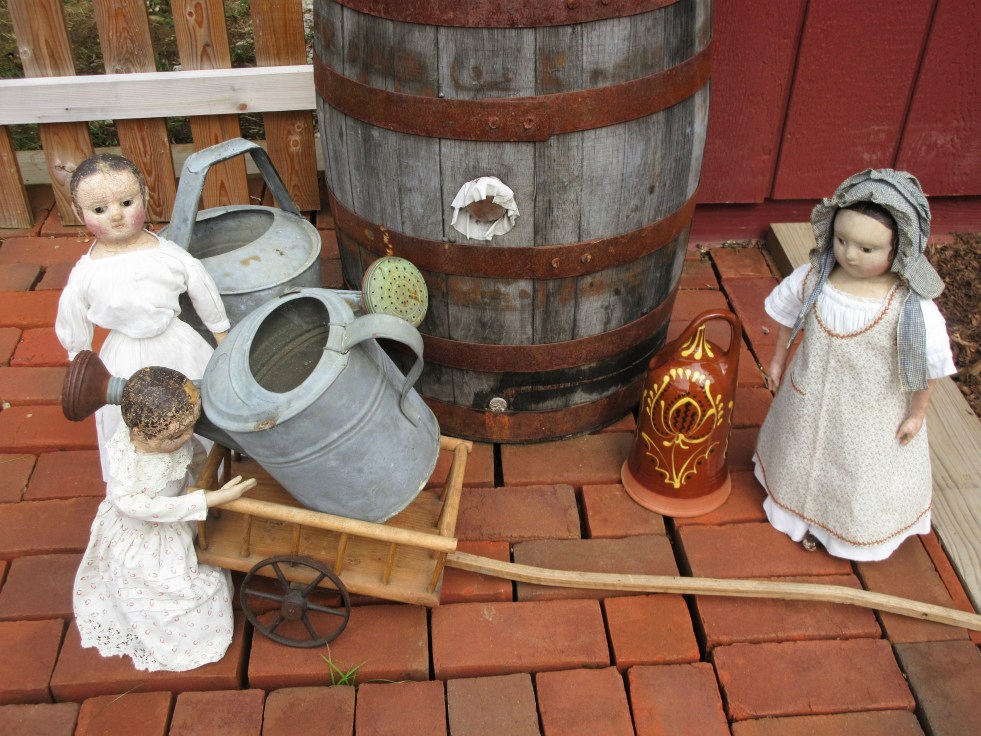 The dolls have been very busy out in the gardens for the past few months. They are hoping that the rain will hold off long enough for them to enjoy one last garden party with all the remaining summer flowers & produce from the gardens….
