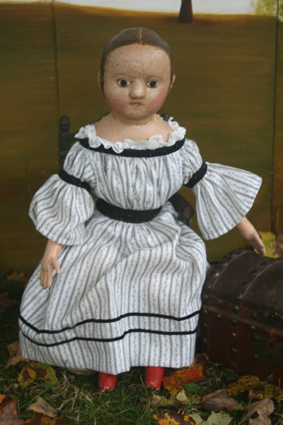 SOLD 16 inch tall reproduction Izannah Walker boy. Made with a pressed cloth head, just like Izannah Walker made her dolls. The mold for this doll was taken directly from one of my original antique Izannah Walker dolls. $1250