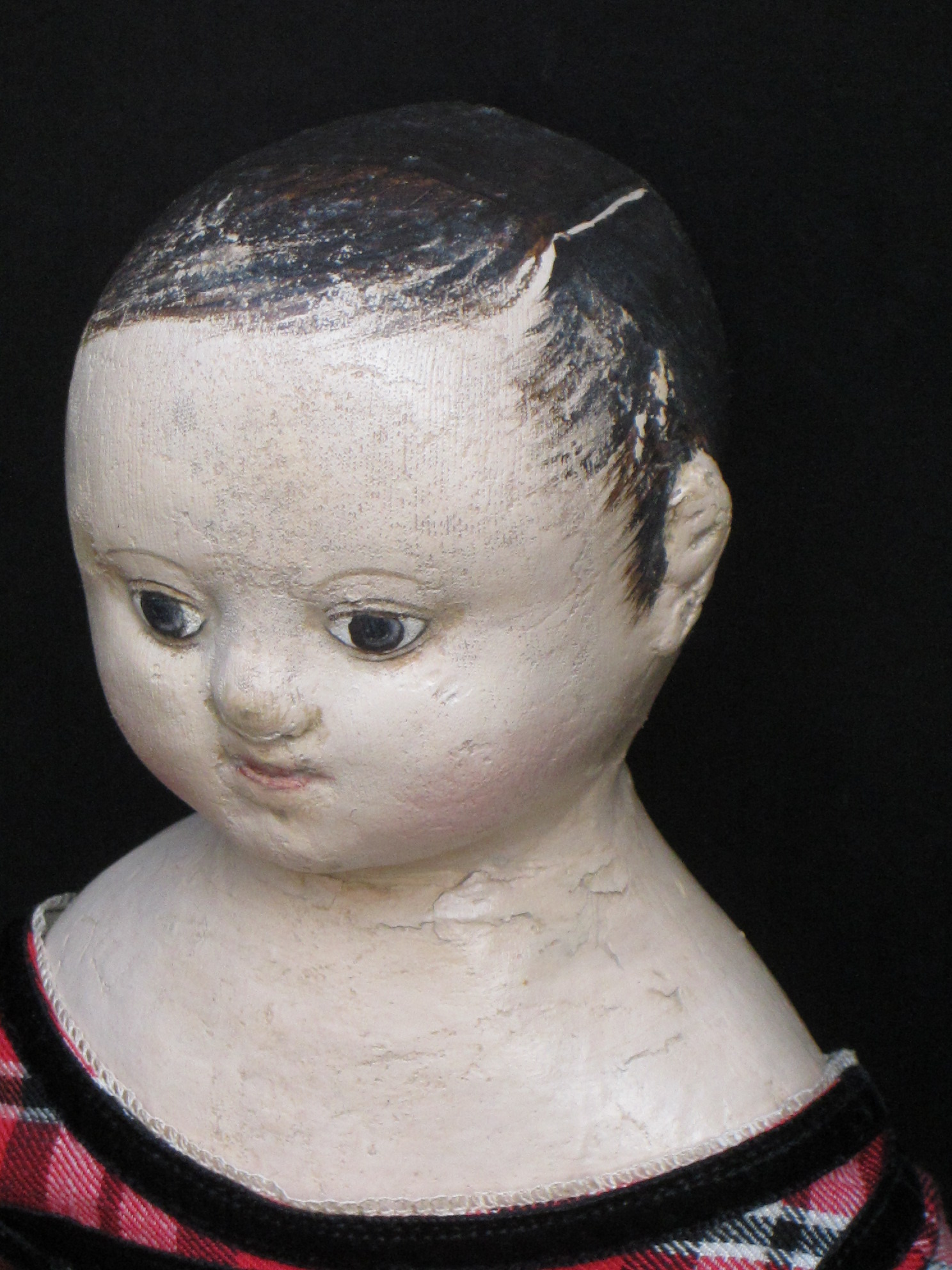 Sooooooooo, a few minutes ago I took additional photos of the painted heads that I posted yesterday. I wish I could show them to you in person, because they look so much richer and more vibrant when they are right in front of your eyes. They have a very subtle aged paint surface that does not show up well in photographs. Actually the best way to see the paint surface is to go over to my eBay auction and use the zoom feature on the first photo of doll head #2.