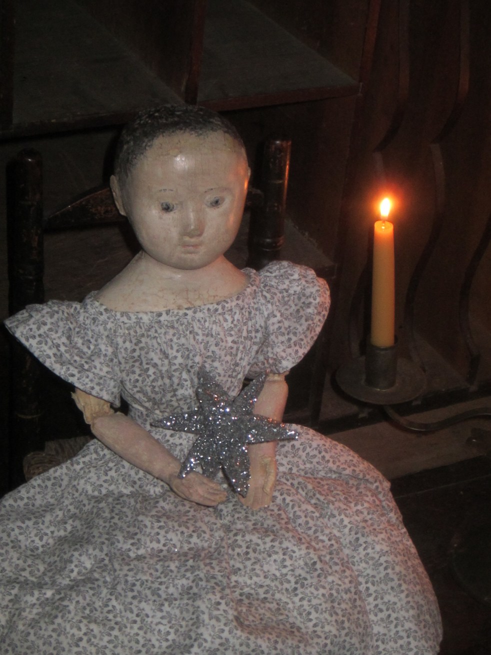 I have two very special dolls available for sale now, just in time for Christmas. Zanna and Izzybelle would love to bring the look and feel of an antique New England Christmas to your house. Both of the girls have very “old” paint finishes that are perfect for anyone who loves early primitive antiques ❤