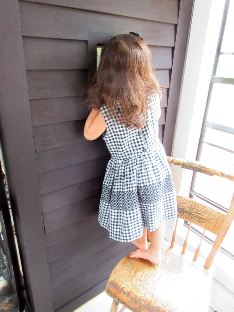 “If only I were just a little taller, I could climb into the parlor and hear what party surprises the dolls are whispering to each other!”