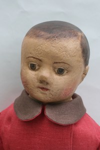 One of the things that I find most endearing about the Walker dolls is their differences. This may be because three individual women had a hand in their construction, either working together or apart. It is also, in my opinion, a very basic fact of life when a doll maker is creating dolls with pressed cloth heads. While all of the original dolls are recognizable as Walker dolls, they do come in many sizes, from 13 to 27 inches* in height, and often have very striking differences from one another. The majority of the dolls are girls, although there are a few boy dolls and even fewer black dolls with lovely, short, nubby black wool hair.