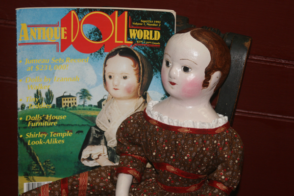 In reading through Early American Life editor Jeanmarie Andrews’ August column, I learned something that I hadn’t known before. Jeanmarie states ” It might seem like we pick our favorites to photograph year after year, but we don’t. Instead we rely on antique dealers and collectors, museum curators and directors who know which colors, designs, dimensions, joinery techniques, and finishes harmonize to produce a masterpiece.” The Early American Life Directory has been in existence for 27 years and gone through many changes to reflect the mission of the various publishing companies who have owned the magazine during that time. I’m not quite sure when they changed the method of selecting items for photography, but I will say that it made me even more humbled and thankful that they chose to photograph one of my dolls.