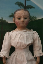Many articles have been written about Izannah Walker and her hauntingly beautiful, iconic cloth dolls. I have found all of them extremely interesting and well worth reading. However, it occurred to me that none of the articles that I have seen were written by someone who has actually made full size reproductions of Izannah’s pressed cloth heads and has experienced first hand the joys and frustrations of this unique type of doll making. So I’ve decided to join the ranks of doll lovers and historians who have gone before me in writing about this fascinating woman and her exceptional dolls.