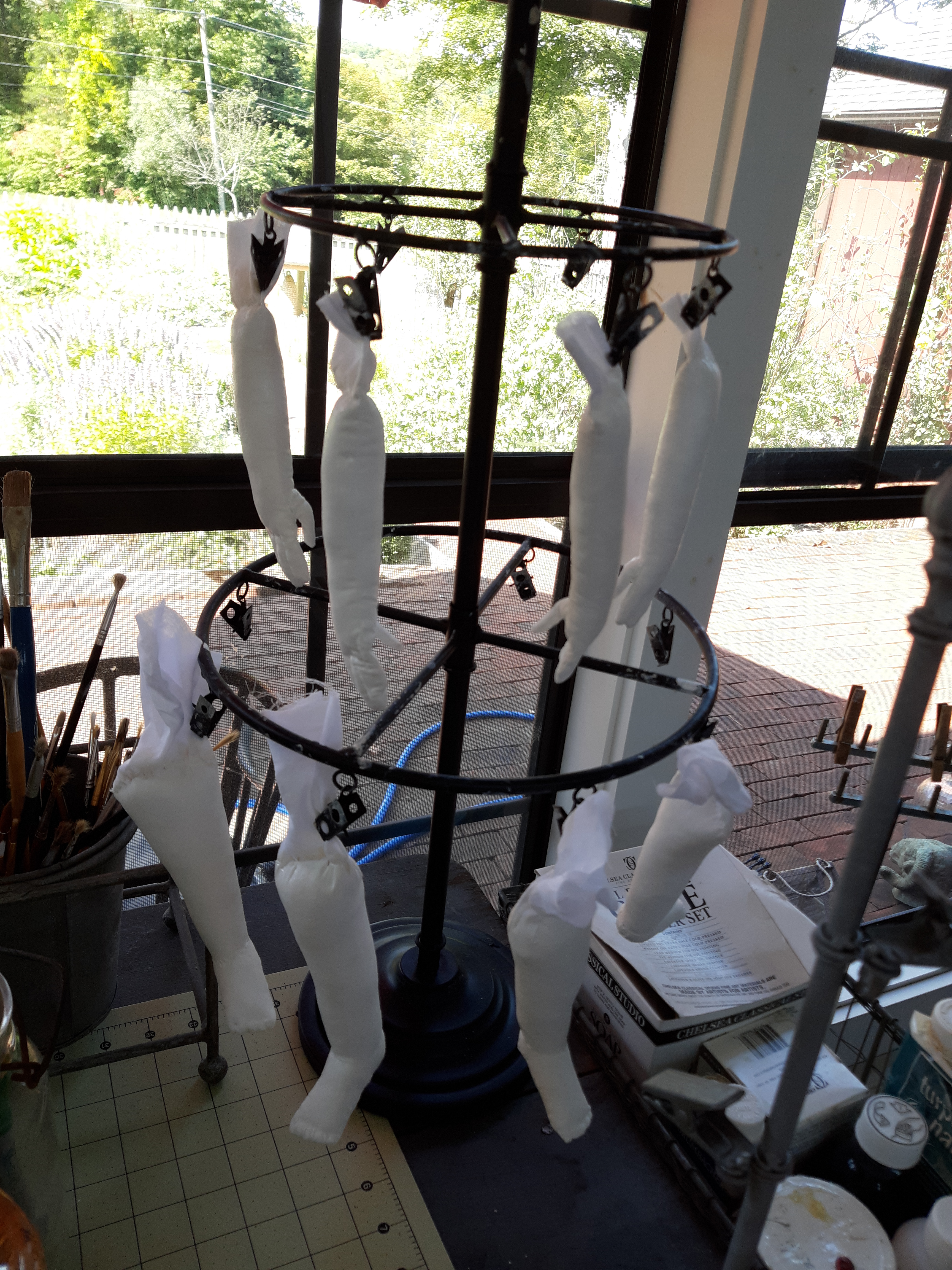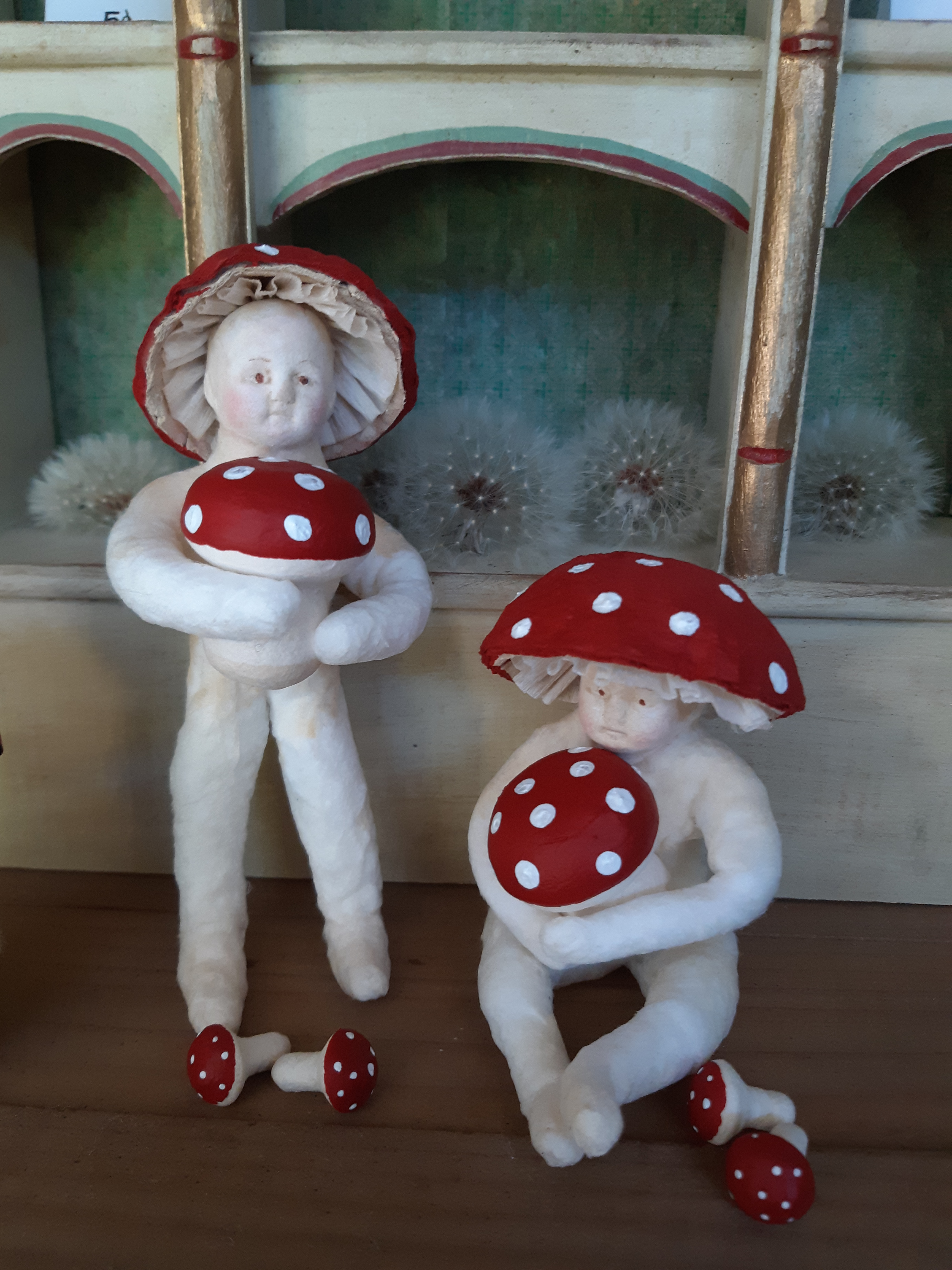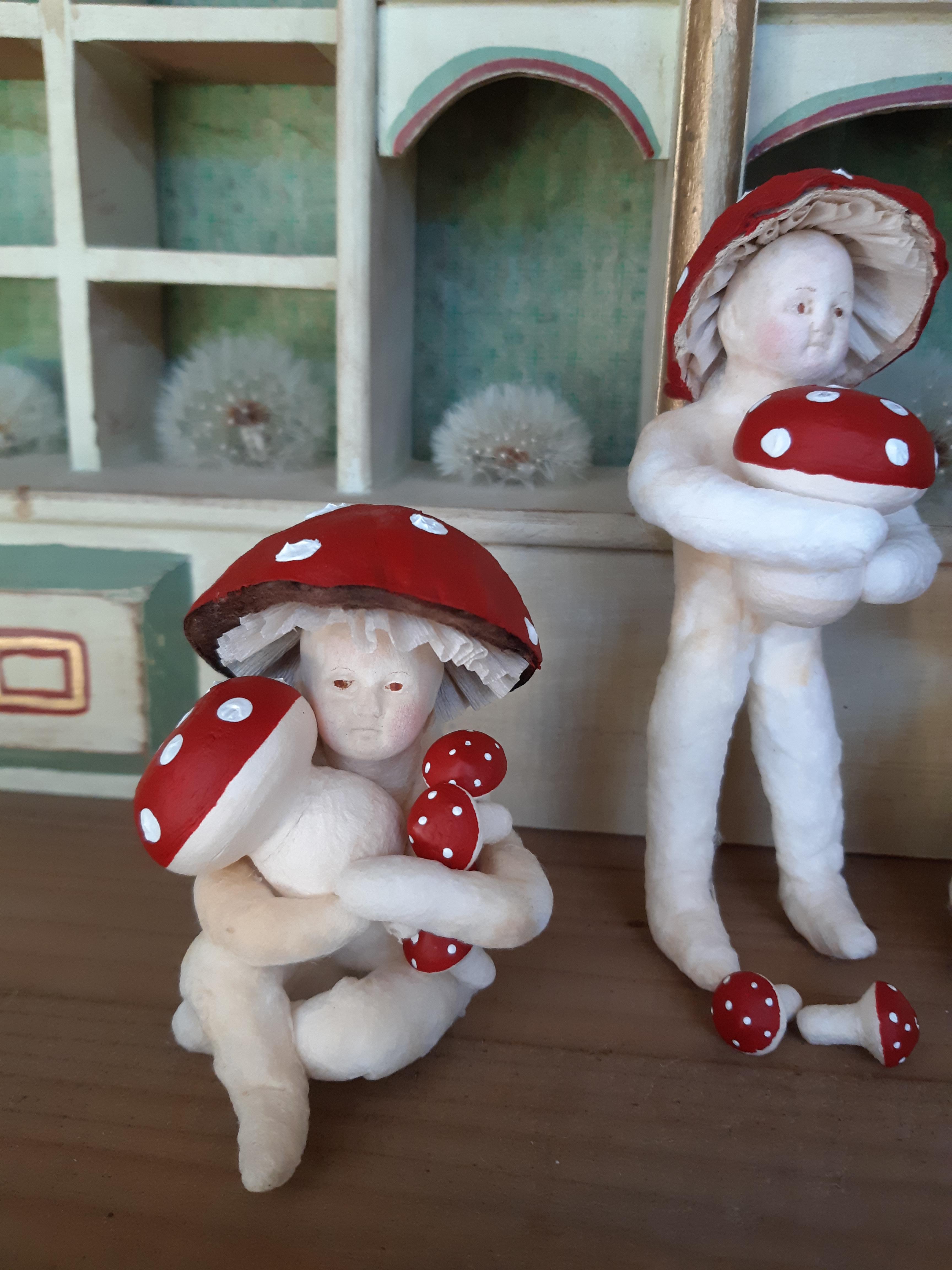 Out in the studios I’ve been doing much needed cleaning and sorting, plus working on exciting new things, some of which involved my carpenter. Obviously I have also been making dolls too, because I always try to have some for sale as part of my Izannah Birthday Celebration. Plus I have been designing a few new spun cotton ornaments! I dearly love making spun cotton figures, but haven’t been able to fit them in between everything else for a long time.