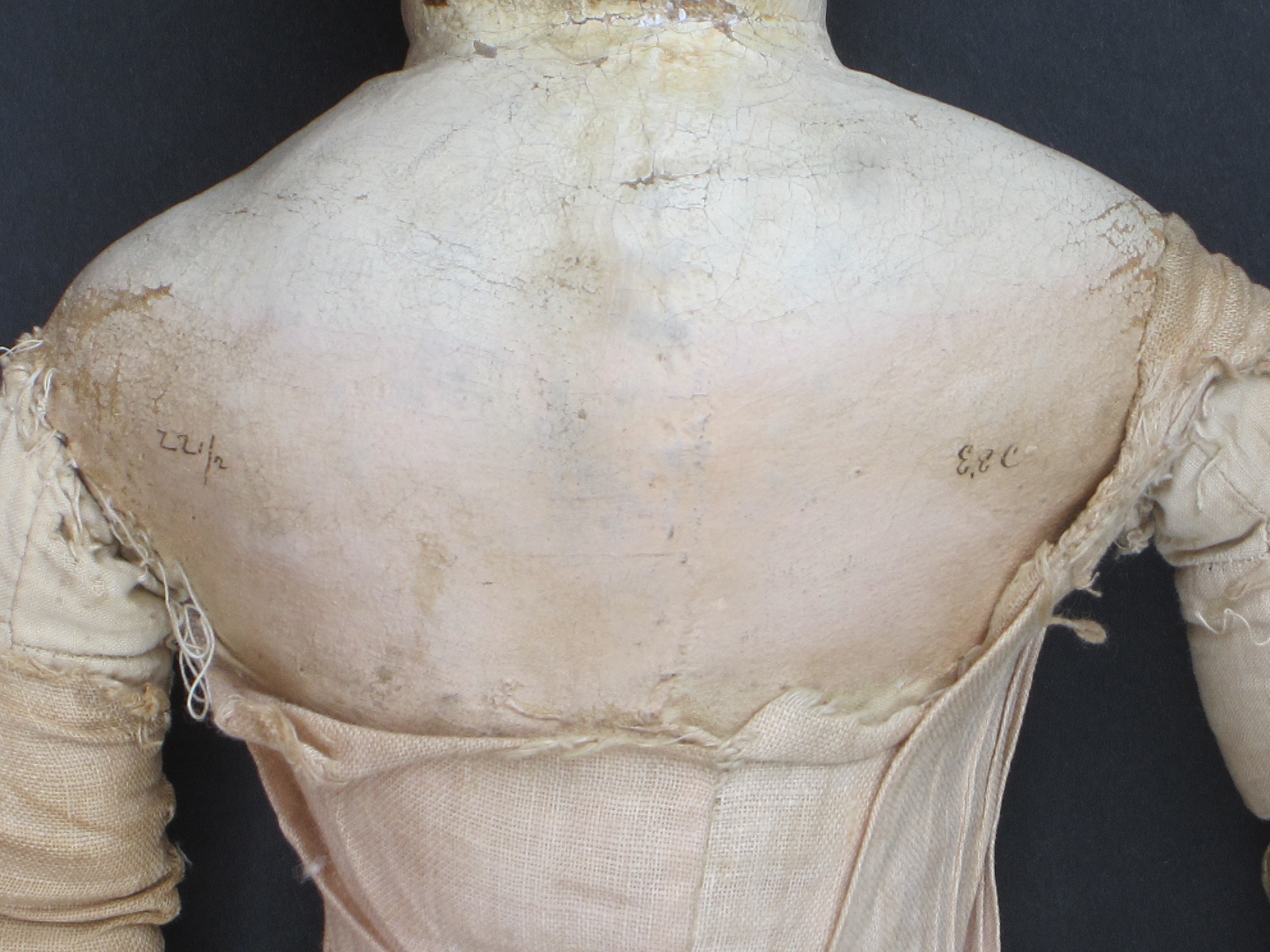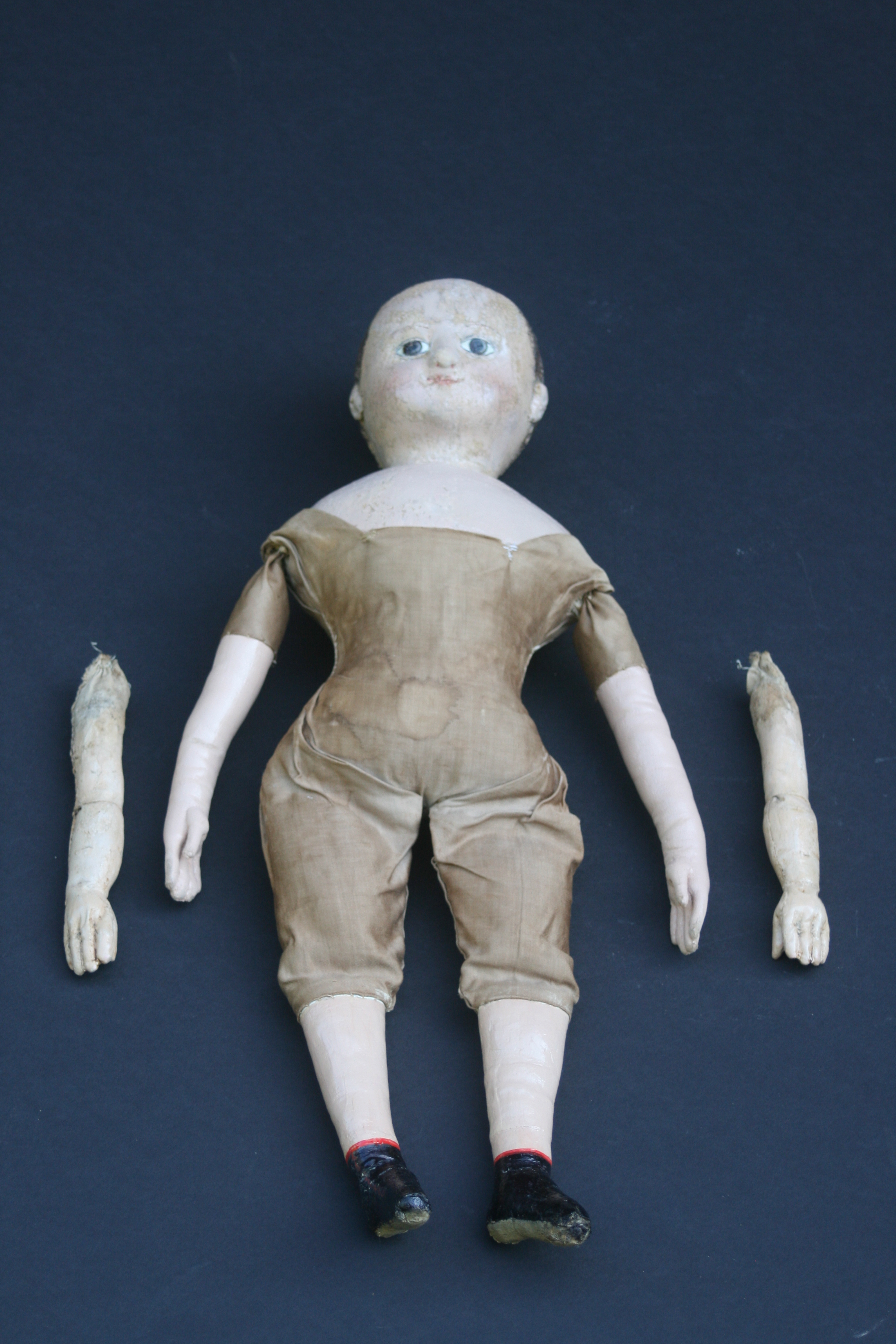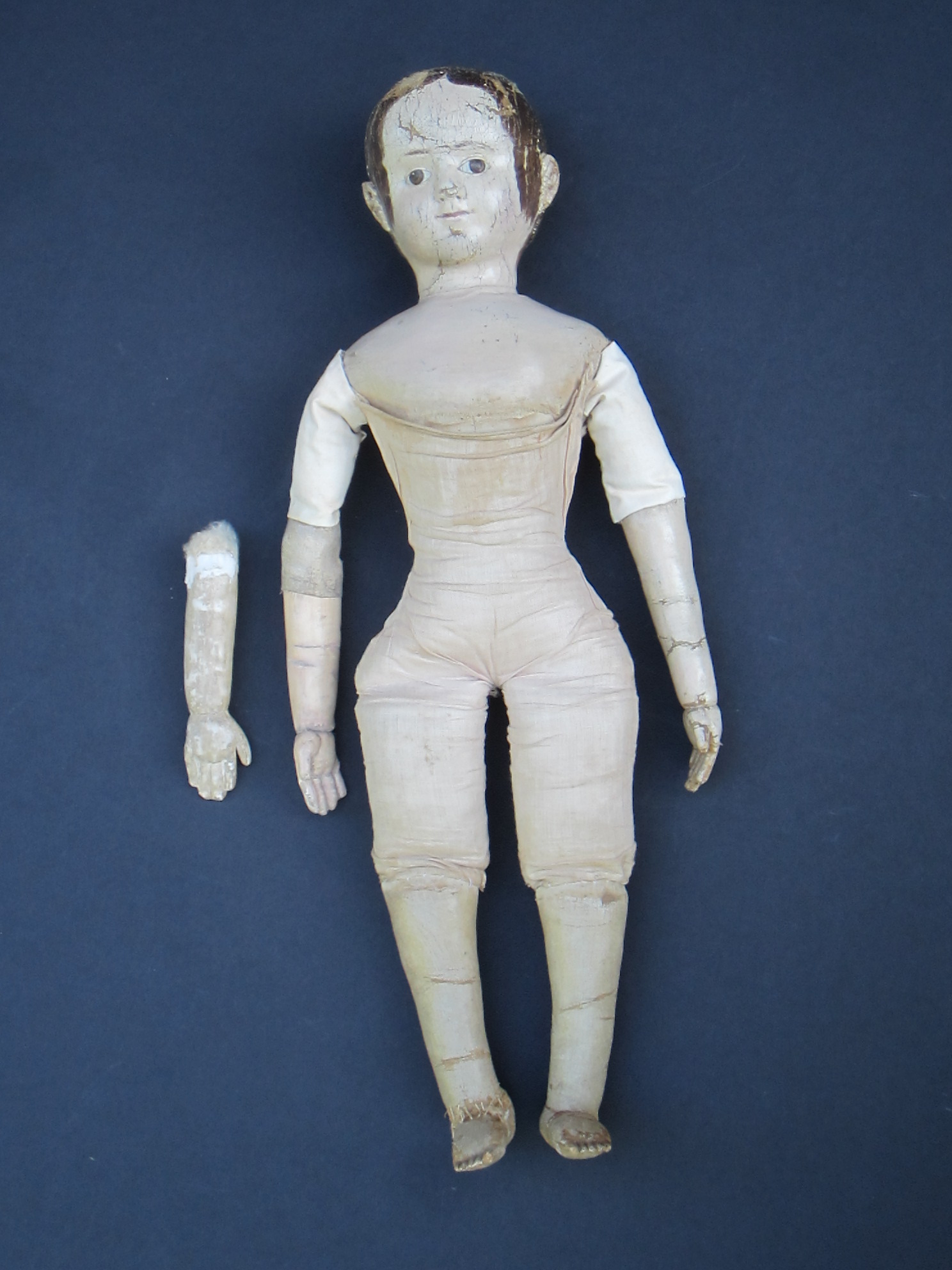 The doll’s linen second skin also needed repairs and a newly made replacement arm was itself in need of replacement.